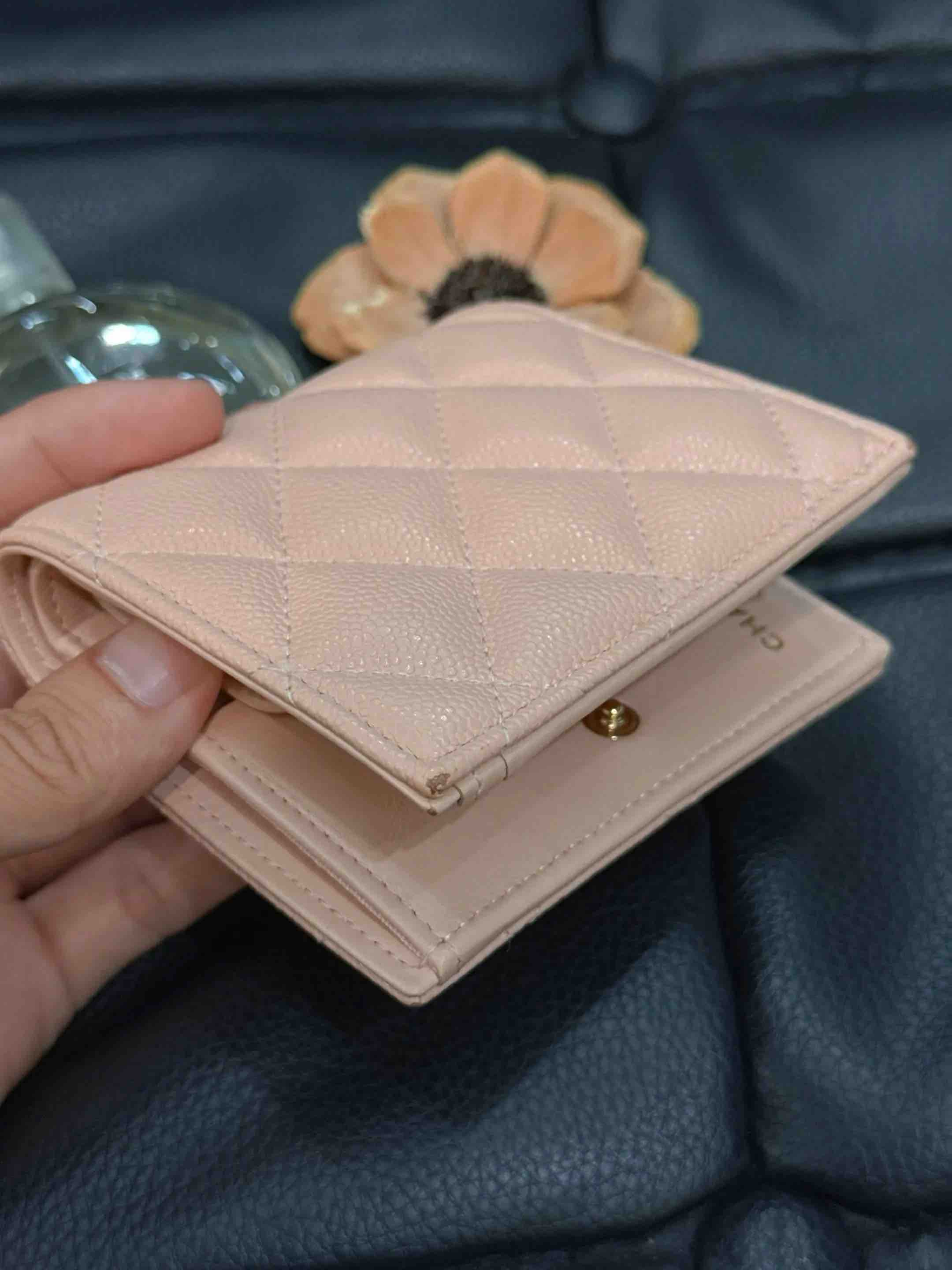【商品详情】正品二手 Chanel 24p 裸粉色 荔枝牛 短款 钱包🌟95 新 10×9 芯片款。边角正常使用感。裸粉色温柔高级