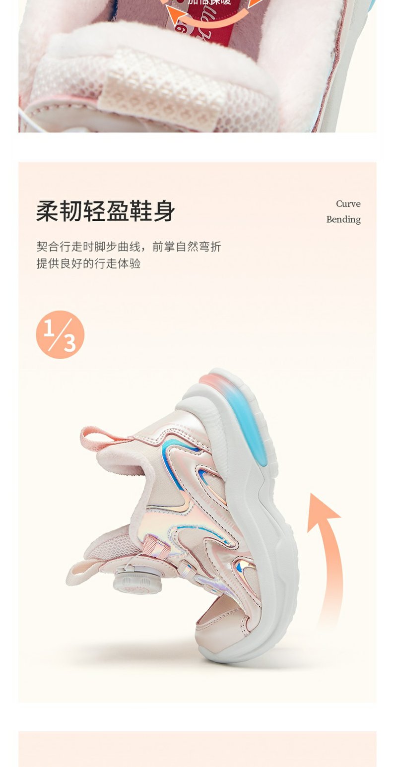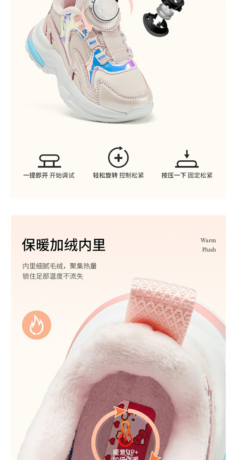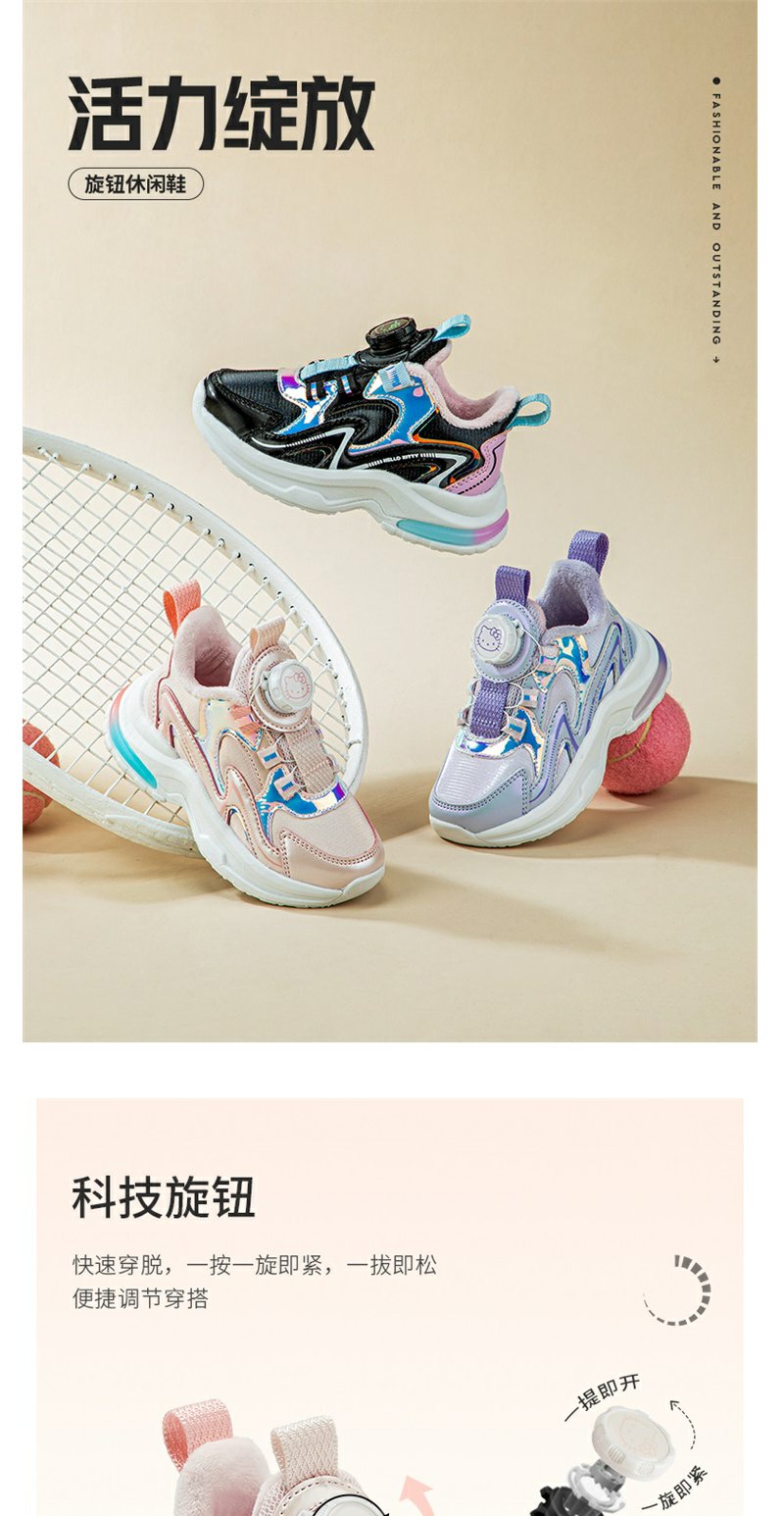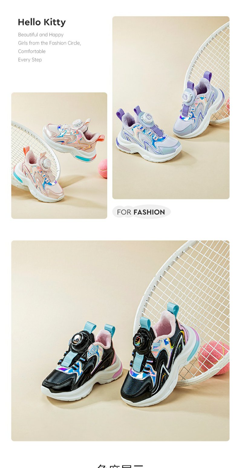 HelloKitty童鞋女童运动鞋冬季新款儿童加绒保暖棉鞋中大童旋钮鞋
