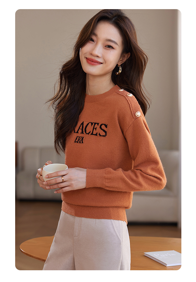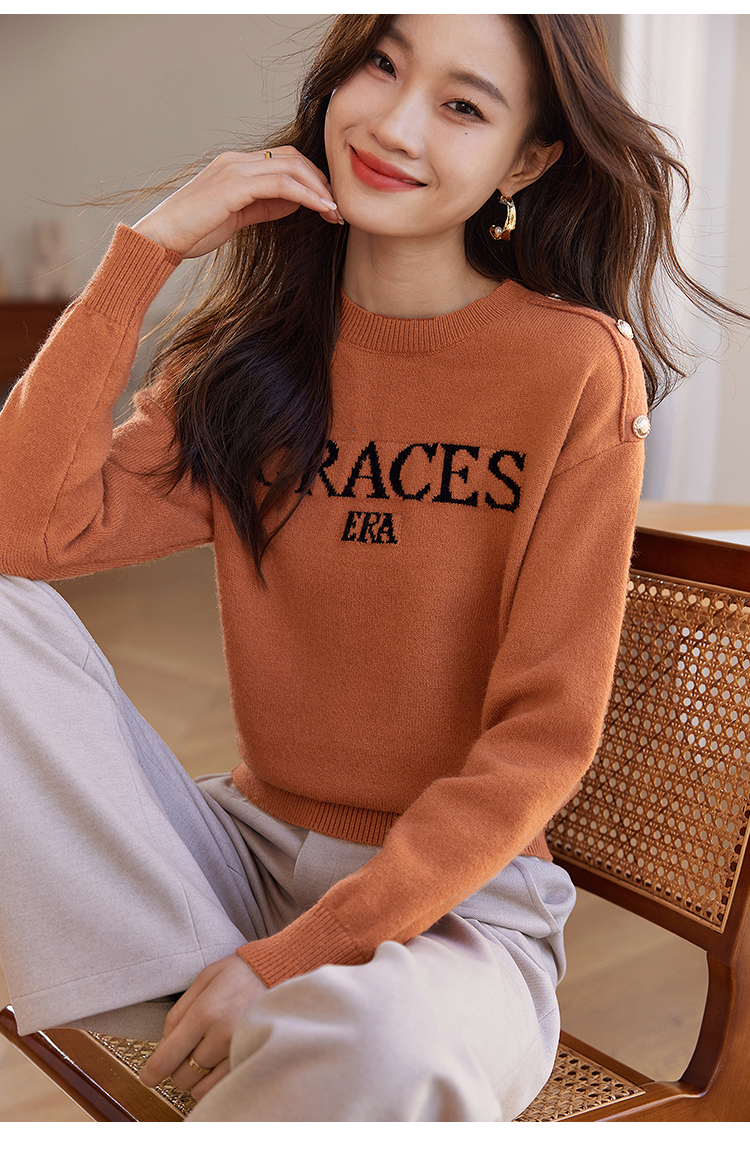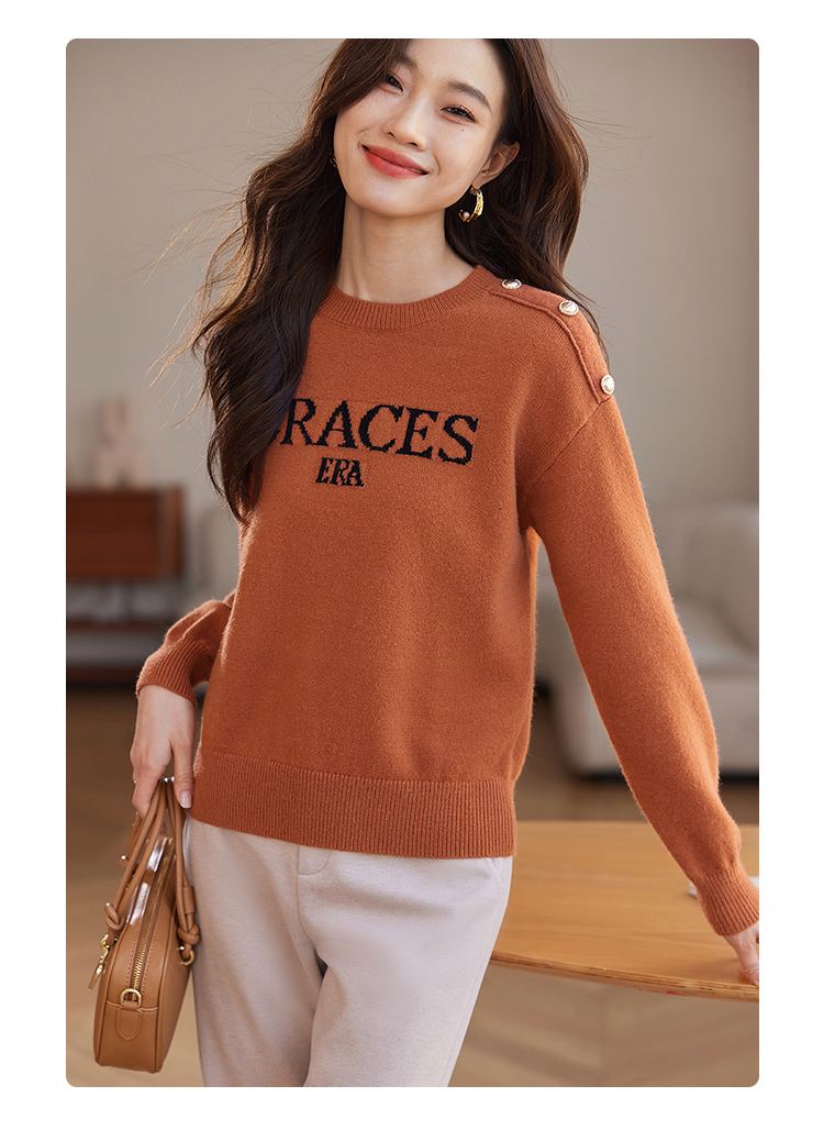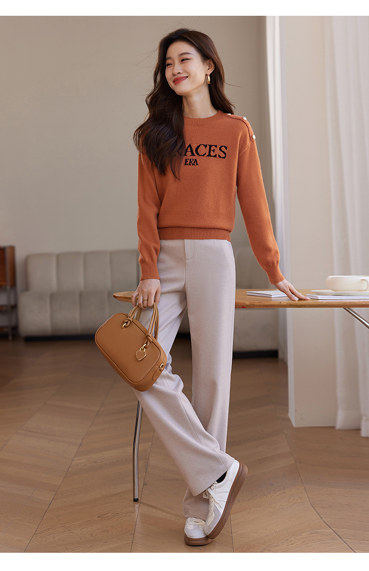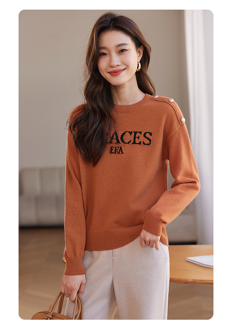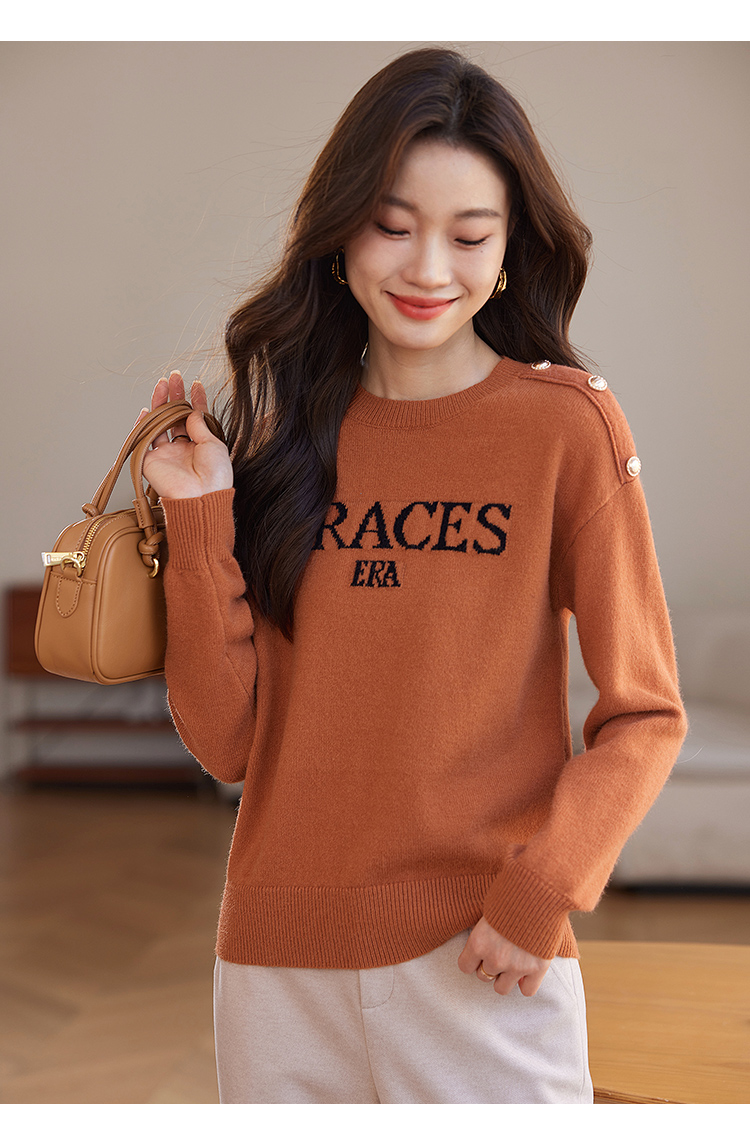 【年终特卖】熙世界提花字母毛衣女套头圆领软糯北极绒打底针织衫2025秋冬款
