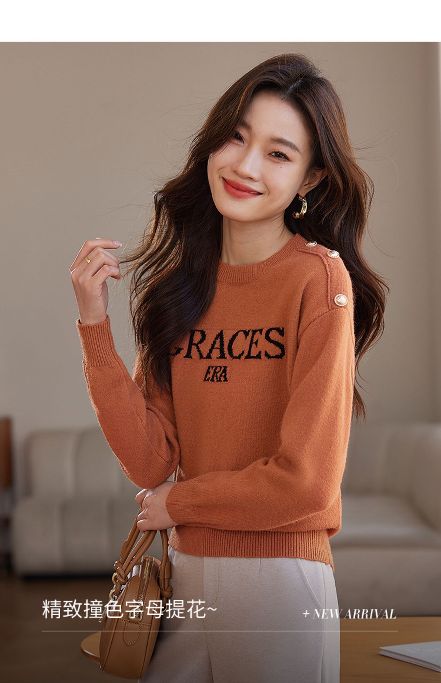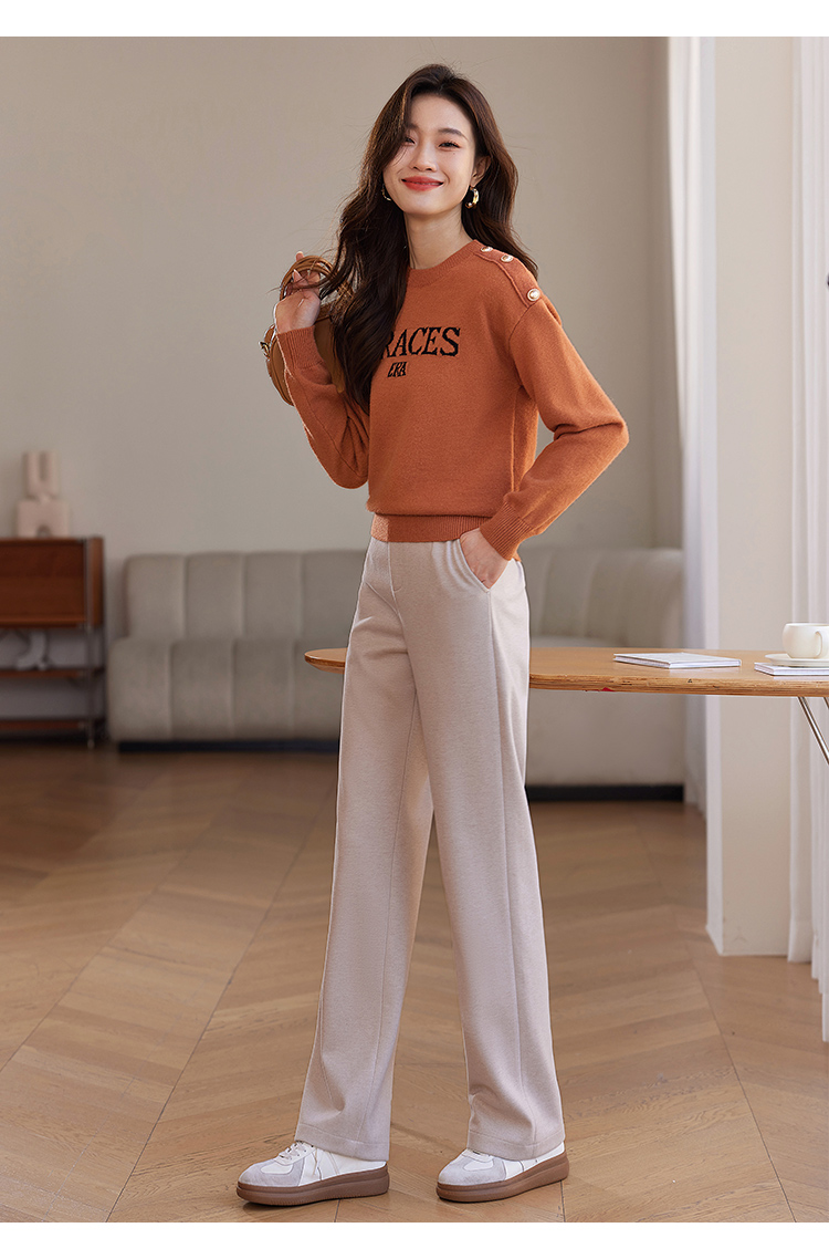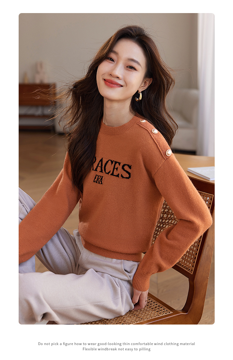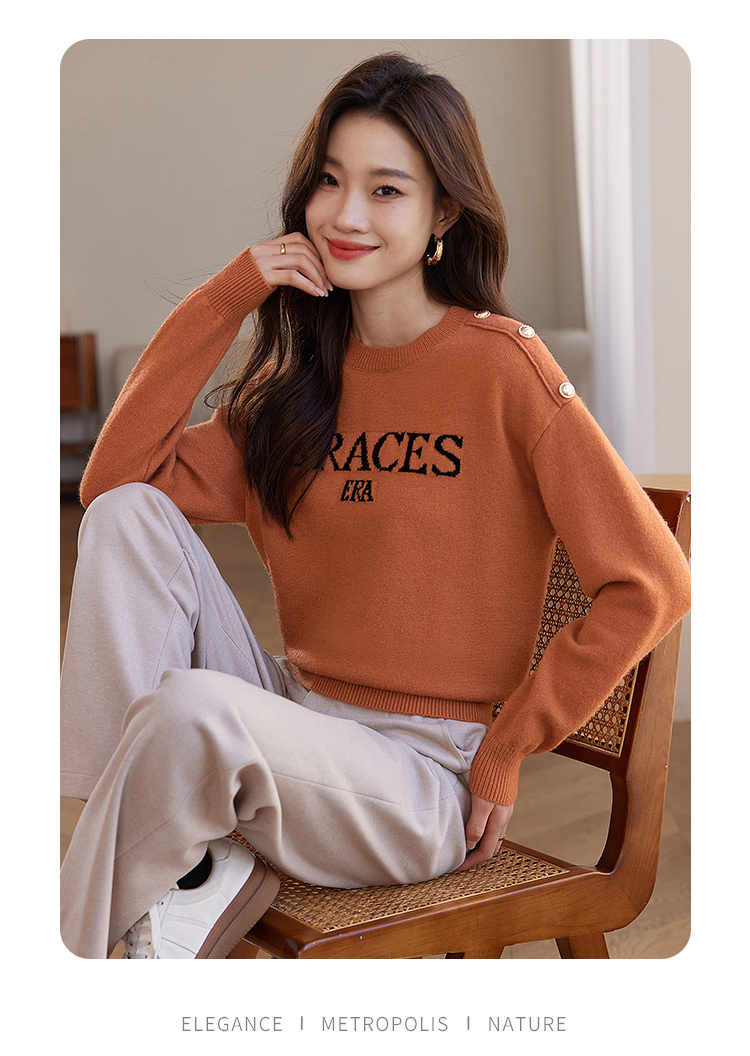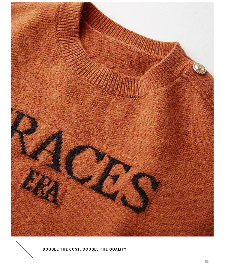 【年终特卖】熙世界提花字母毛衣女套头圆领软糯北极绒打底针织衫2025秋冬款