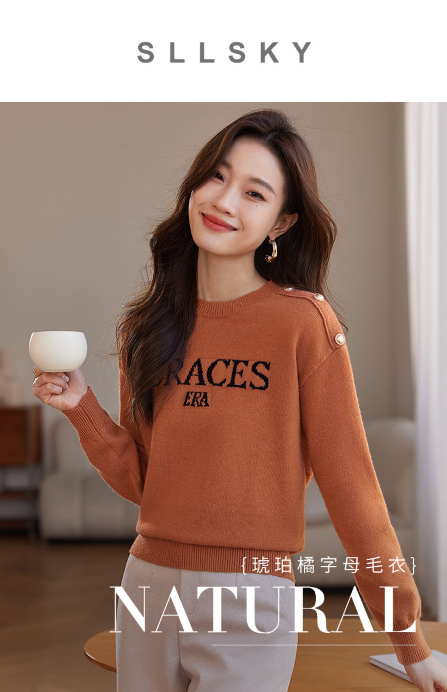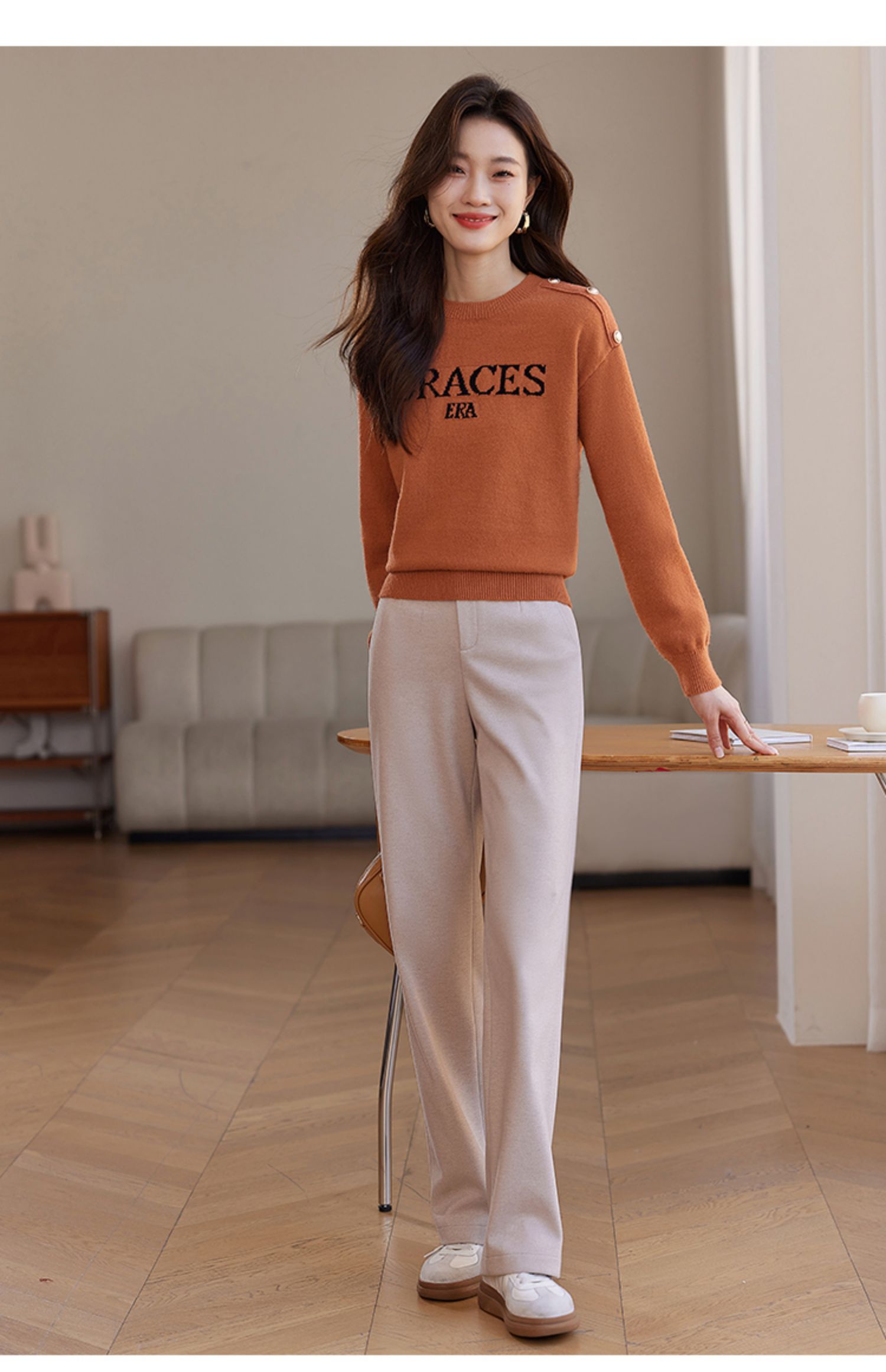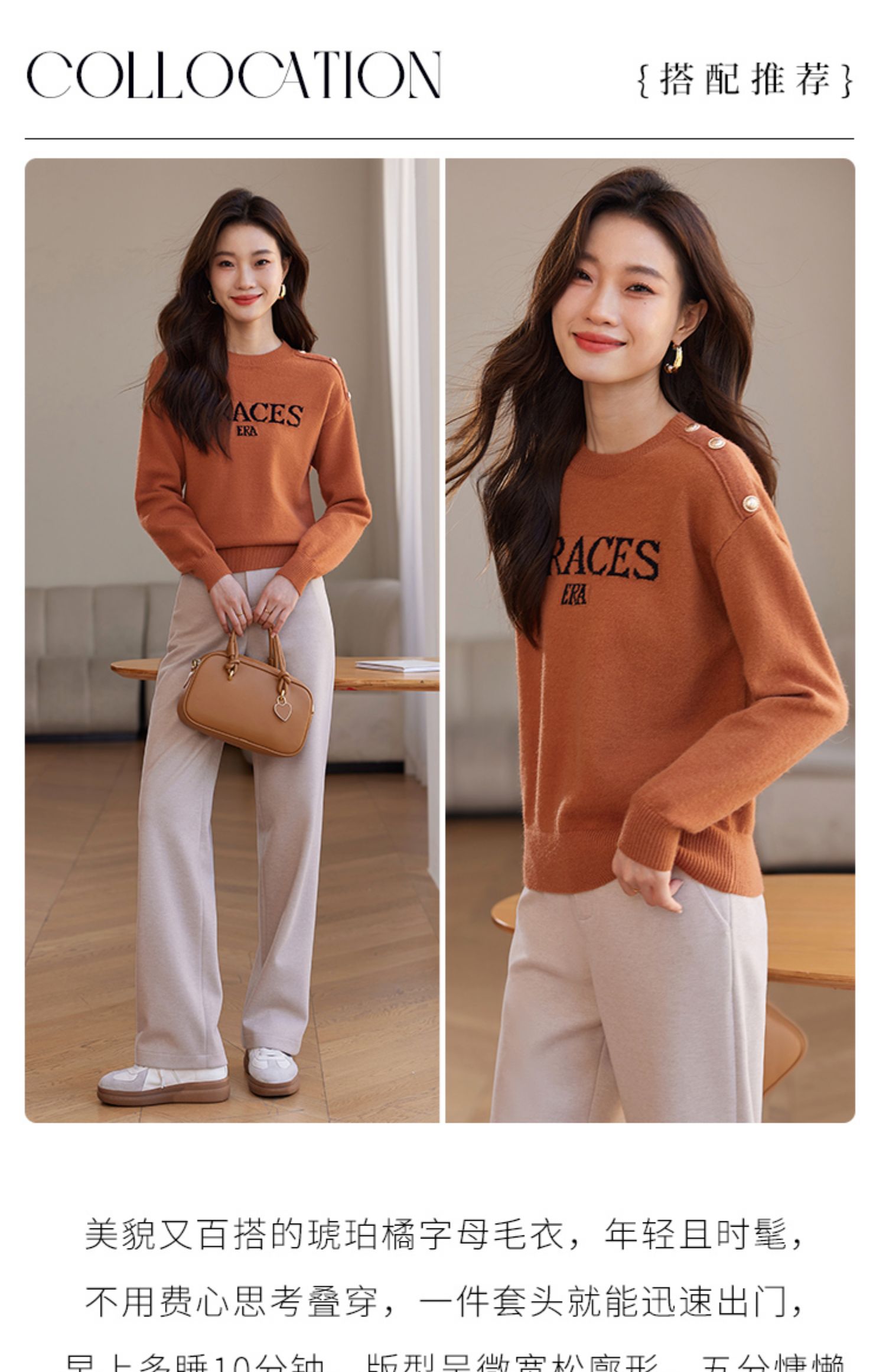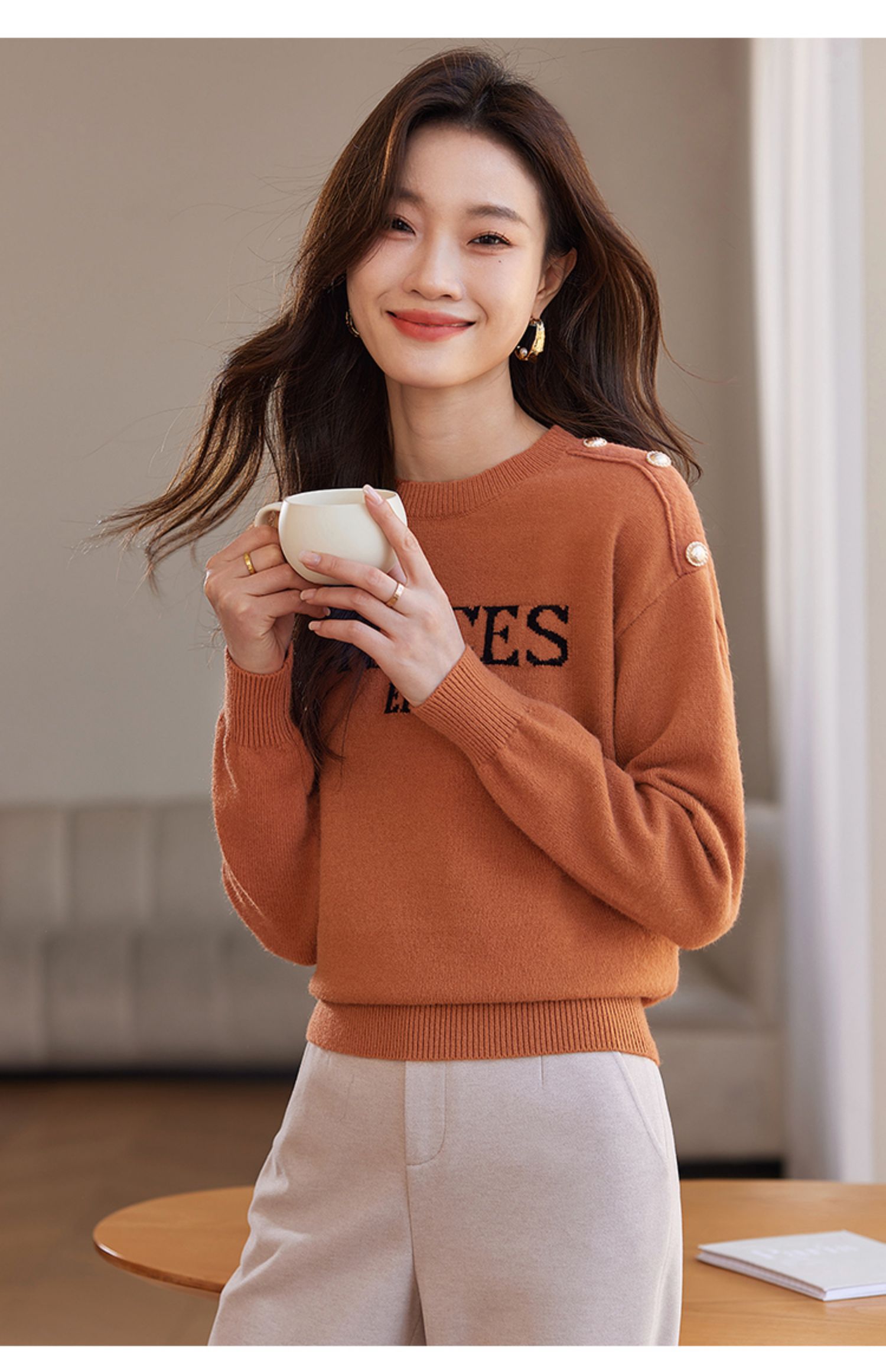 【年终特卖】熙世界提花字母毛衣女套头圆领软糯北极绒打底针织衫2025秋冬款