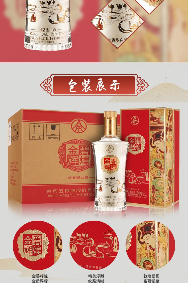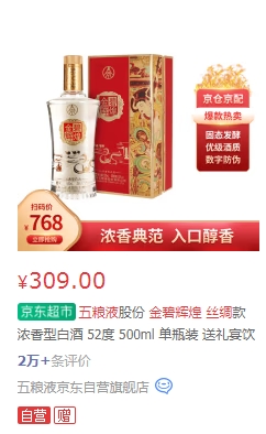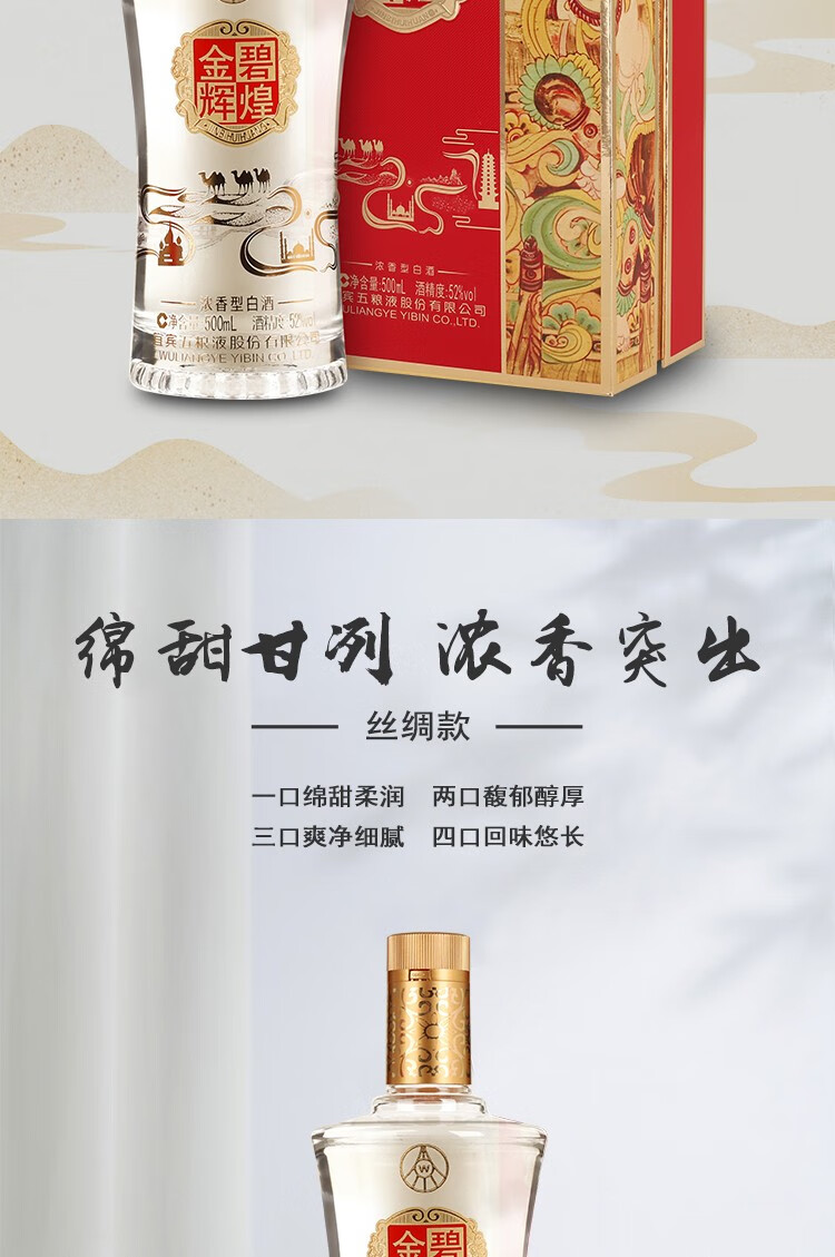 【宜宾五粮液】 金碧辉煌 丝绸款 浓香型白酒 52度 500ml 单瓶装