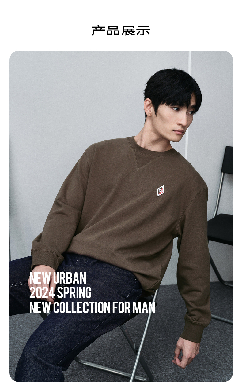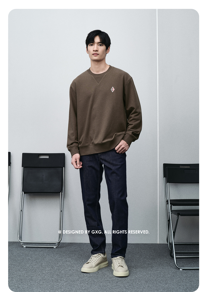 GXG男装 棕色拼接设计圆领卫衣 24年春季热卖GFX13100871