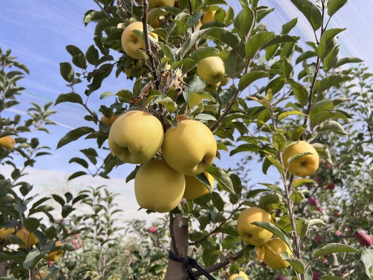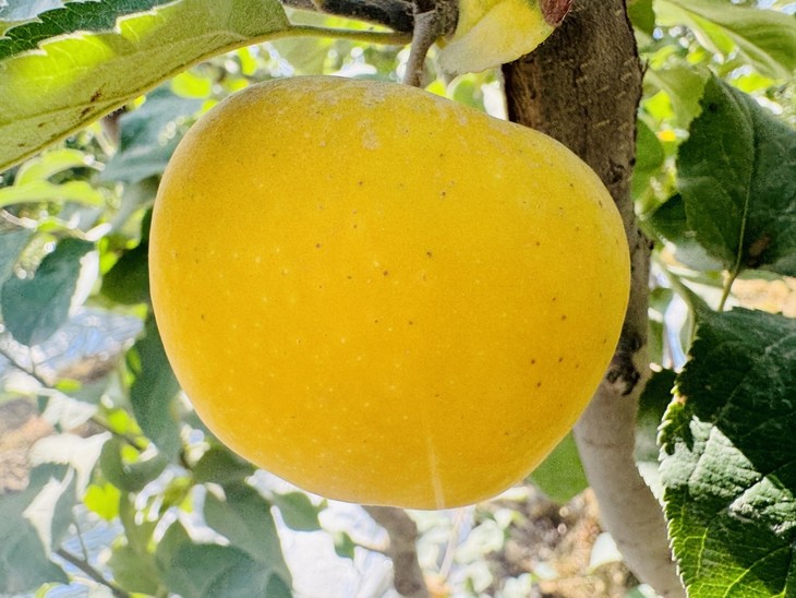 别看它名字洋气,其实有一半“中国血统”。牛艳青介绍,黄金维纳斯的母本是中国老品种金帅,后来由被日本前岩手大学教授横田清杂交后选育而成,“说到底,还是国产儿!”