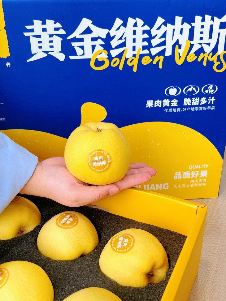 “懂的人自然懂!去年被买爆的网红苹果,好吃程度不亚于青森王林。”新农人牛艳青笑着说。黄金维纳斯源自日本,属于高甜浓香型苹果,近几年才在阿克苏落地生根。虽然产量不多,但品质超能打,去年上线两周就被抢了七成,“去年没抢到的,今年可要手速快了!”