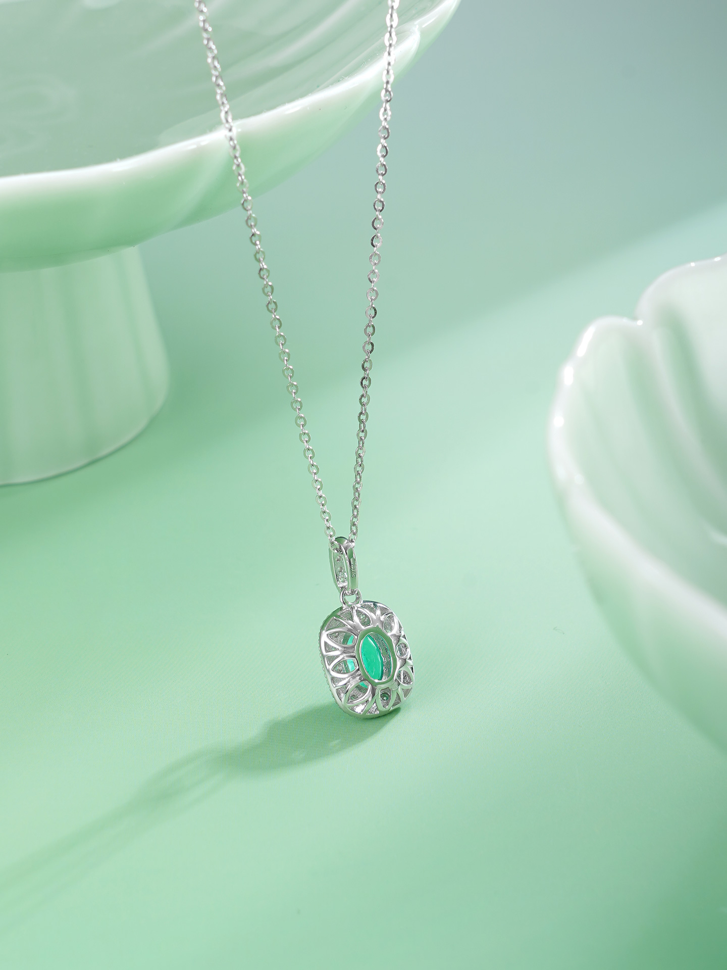 【寓意】:纯银吊坠搭配明丽清透的绿色宝石,色泽如雨后新叶沐光,自带治愈系的清新能量。象征拨开阴霾,心向光明。