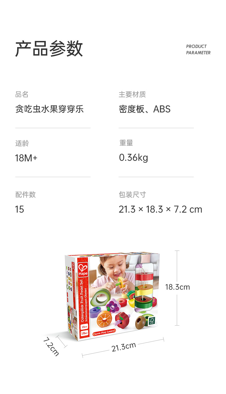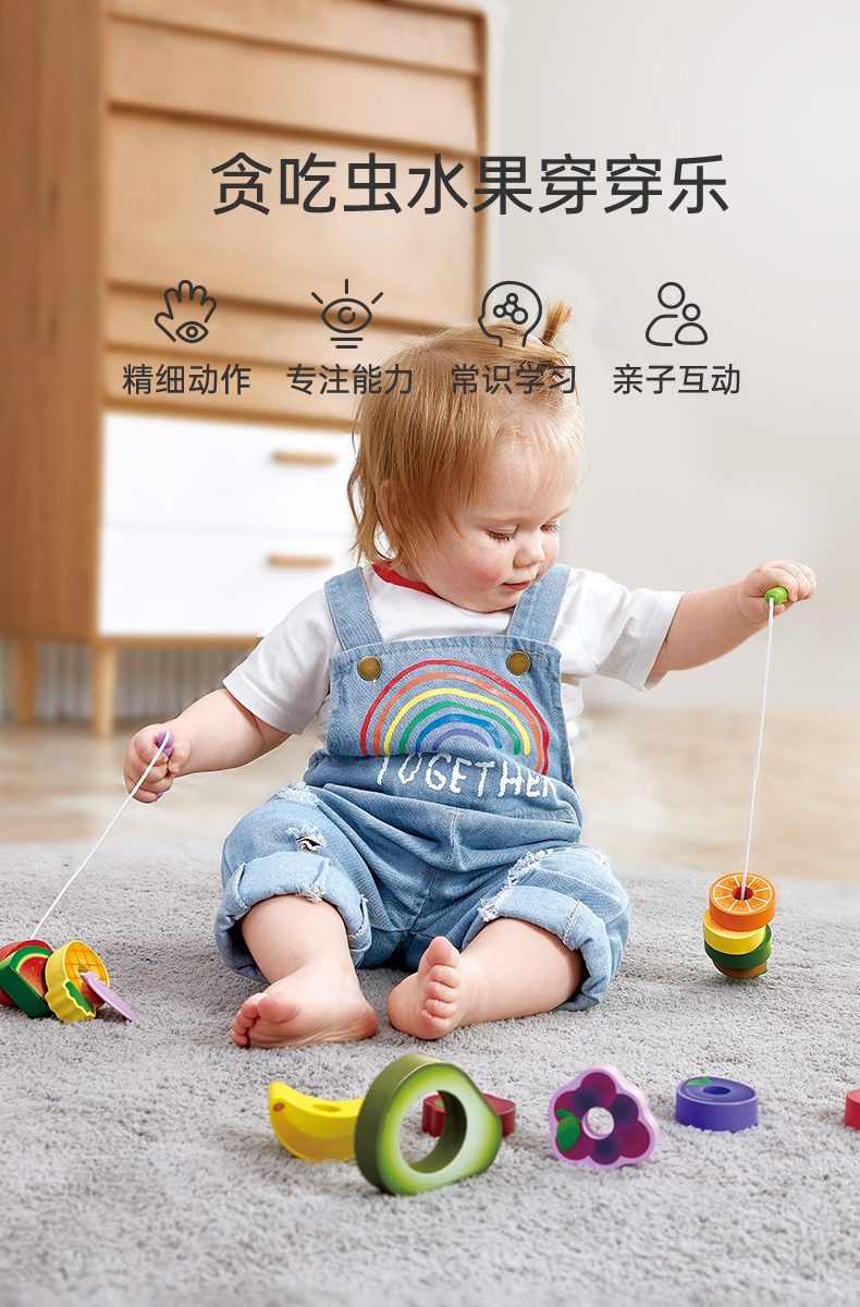 【独家特惠】Hape贪吃虫水果穿穿乐E1072