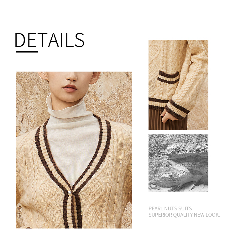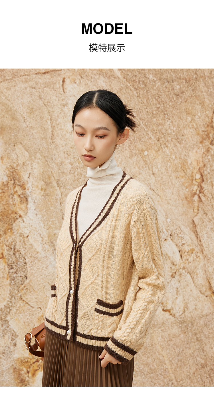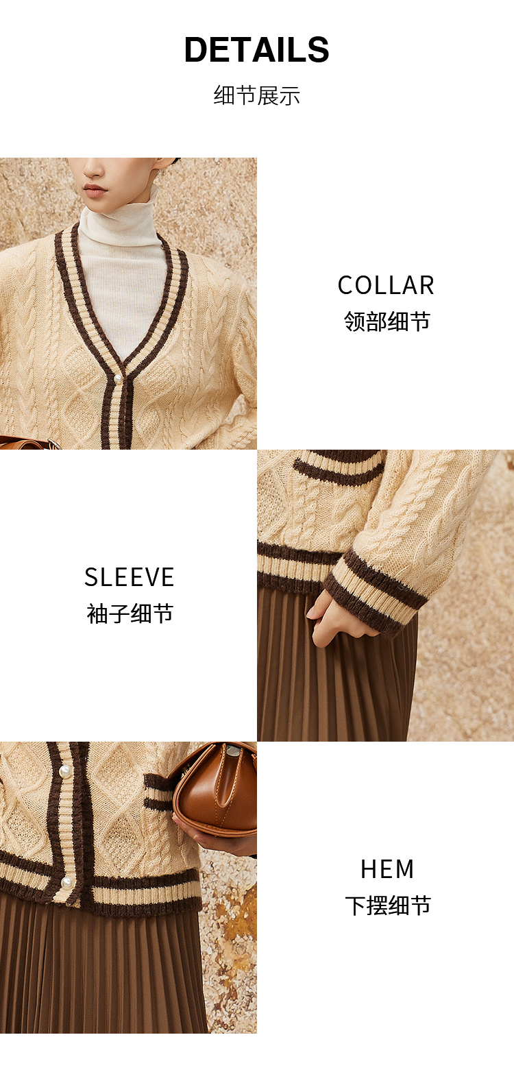 NUTS复古气质百搭撞色简约V领短款针织开衫外套女335052258