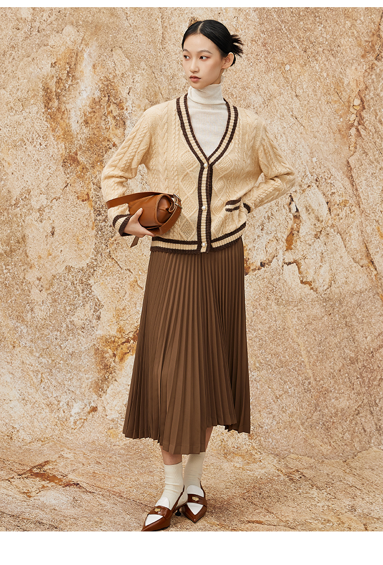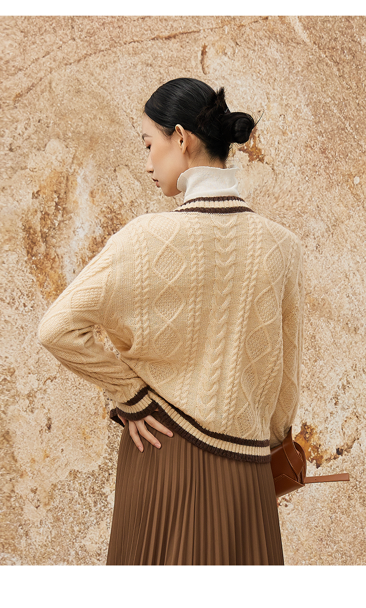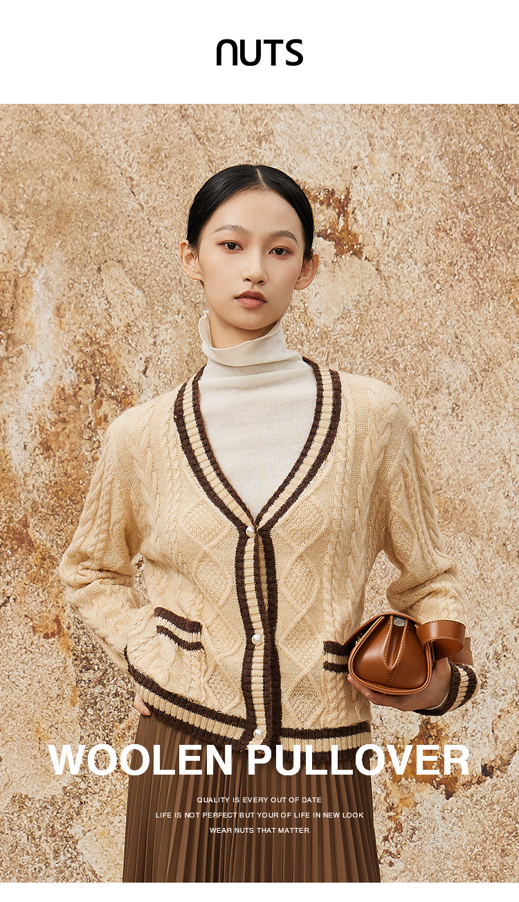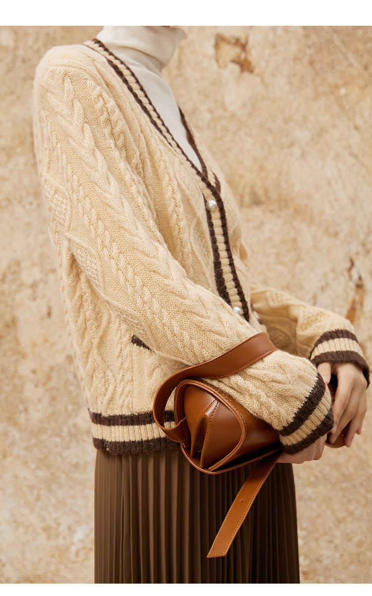 NUTS复古气质百搭撞色简约V领短款针织开衫外套女335052258