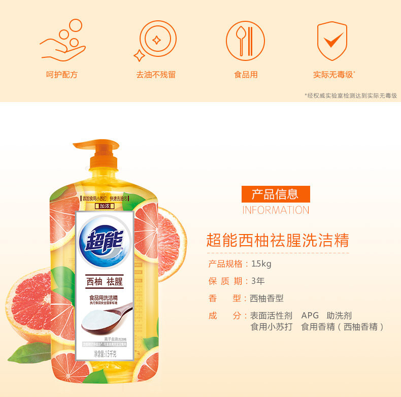 超能西柚洗洁精1.5kg(仅供济南市区)