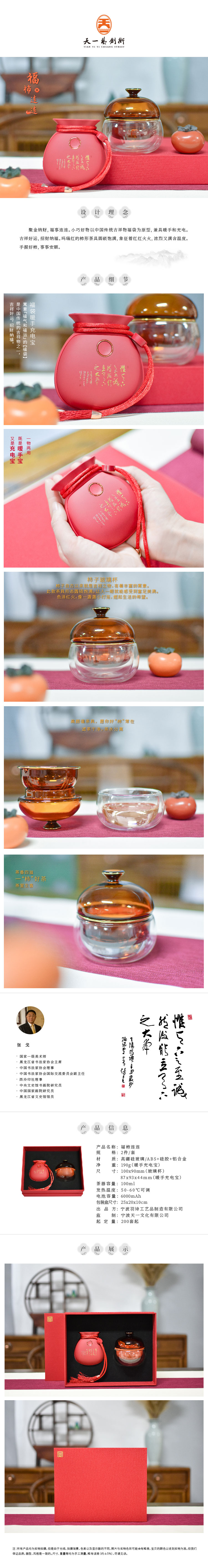 羽诗制造出品 福柿连连套装福袋暖手充电宝柿子玻璃杯文创礼盒
