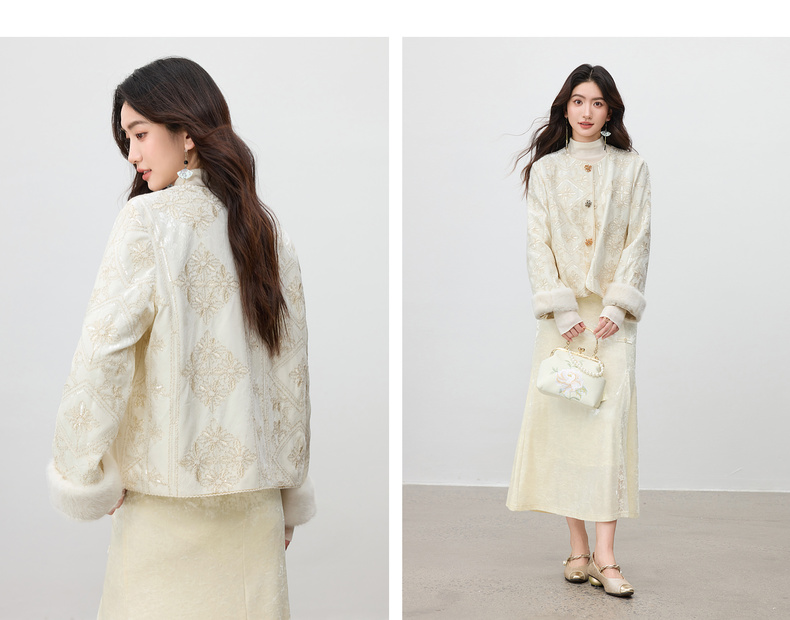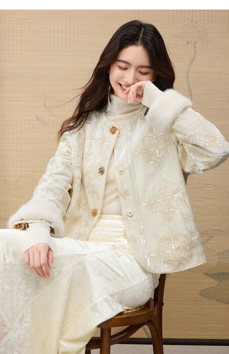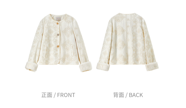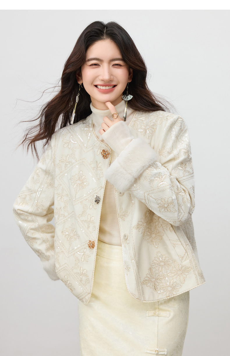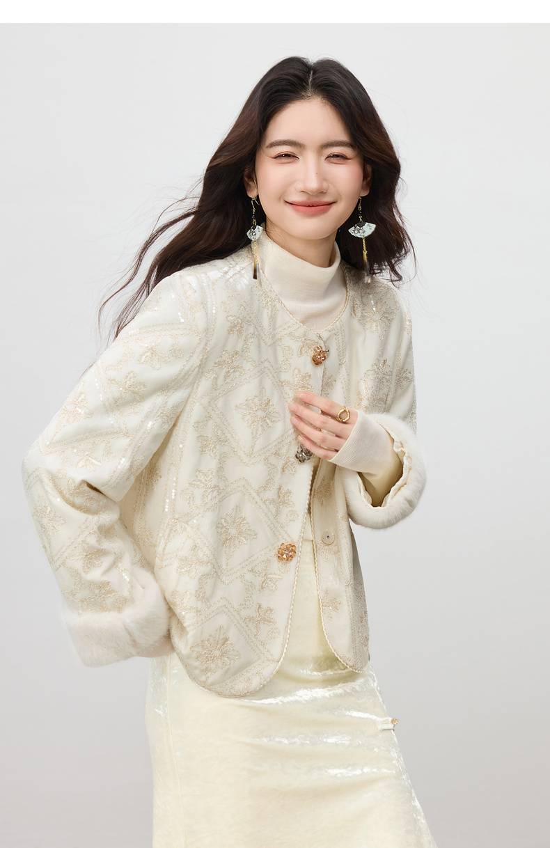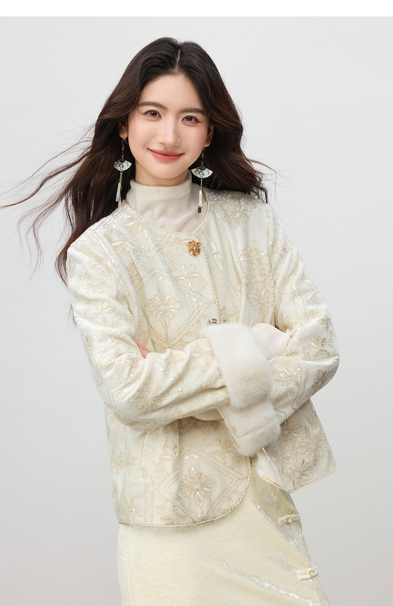 【内购】【内里夹层保暖】优雅圆领金线刺绣宫廷花卉丝绒厚保暖国风外套-154WB3880
