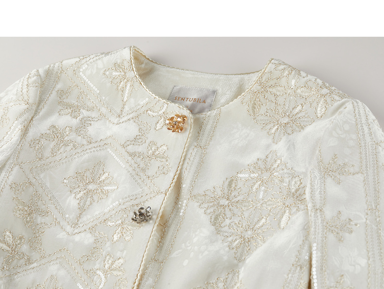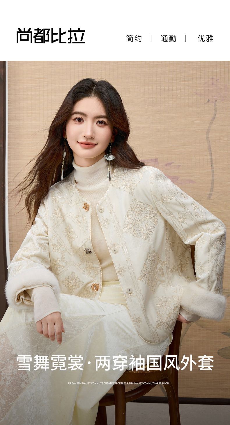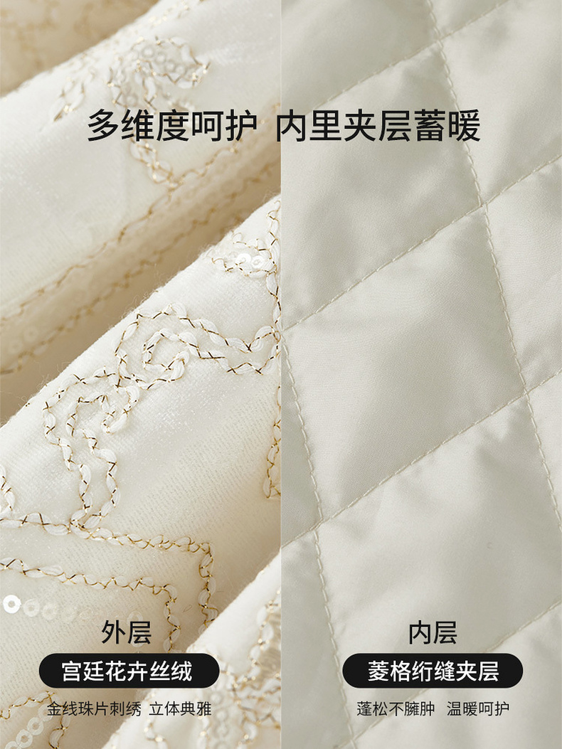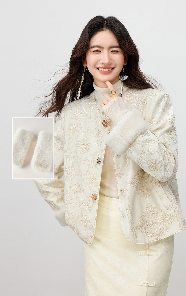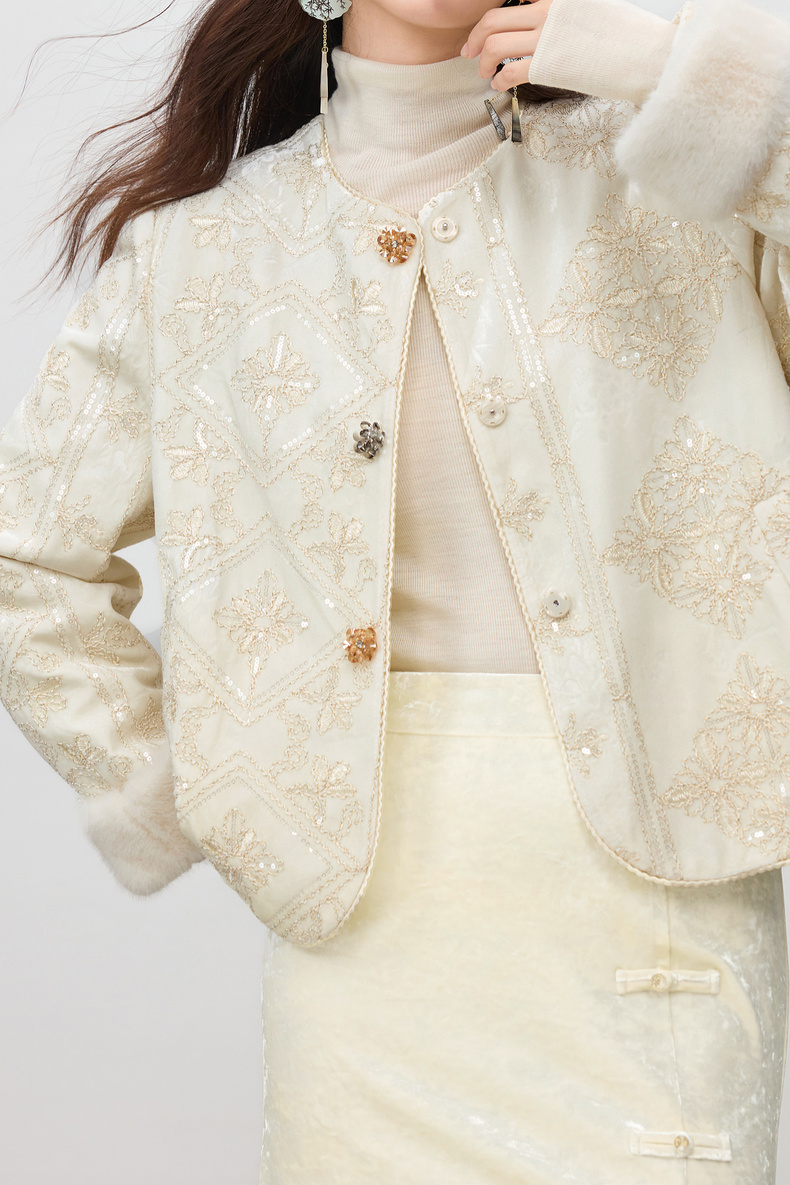 【内购】【内里夹层保暖】优雅圆领金线刺绣宫廷花卉丝绒厚保暖国风外套-154WB3880