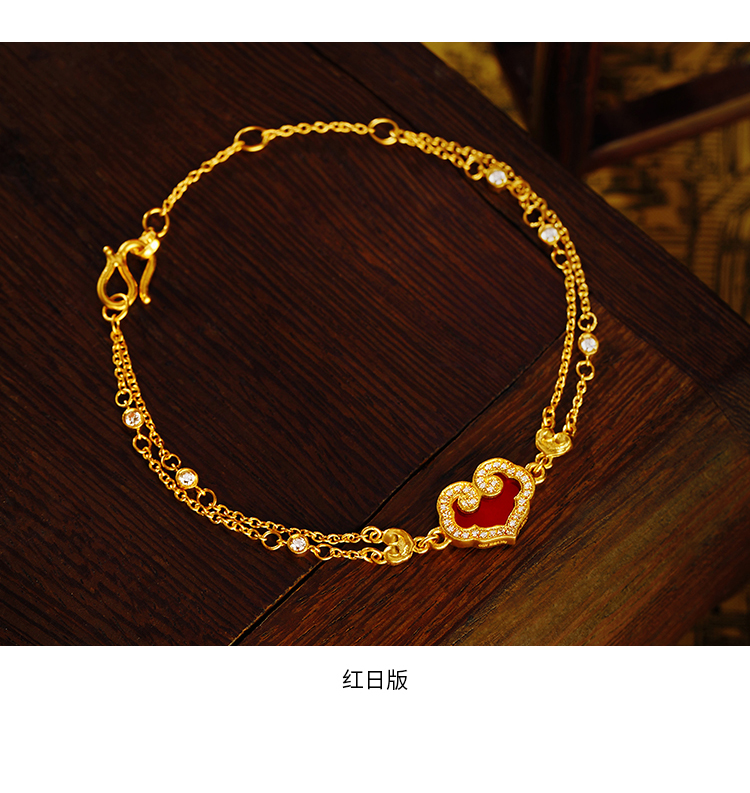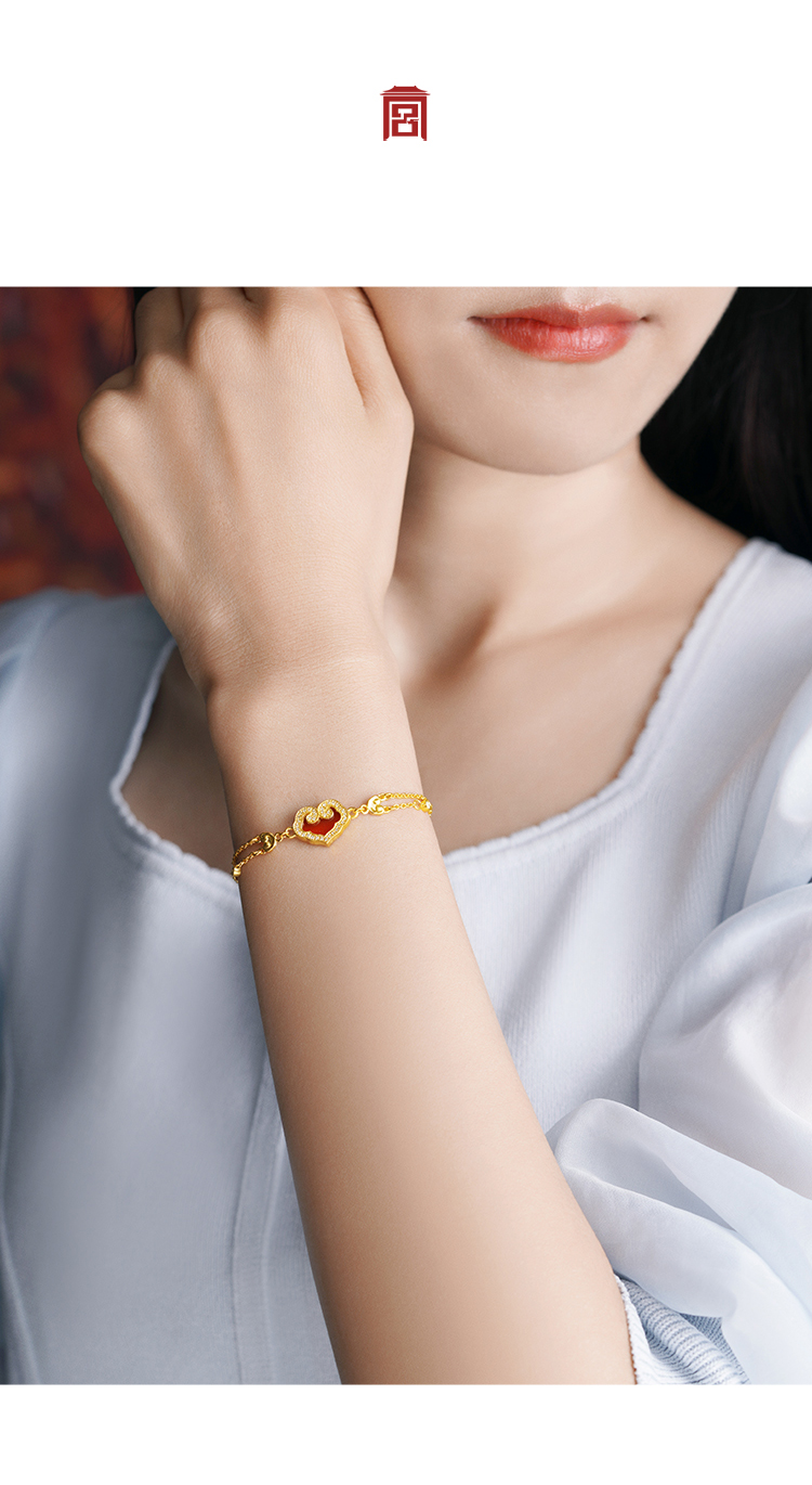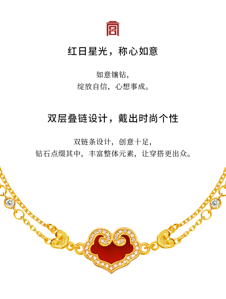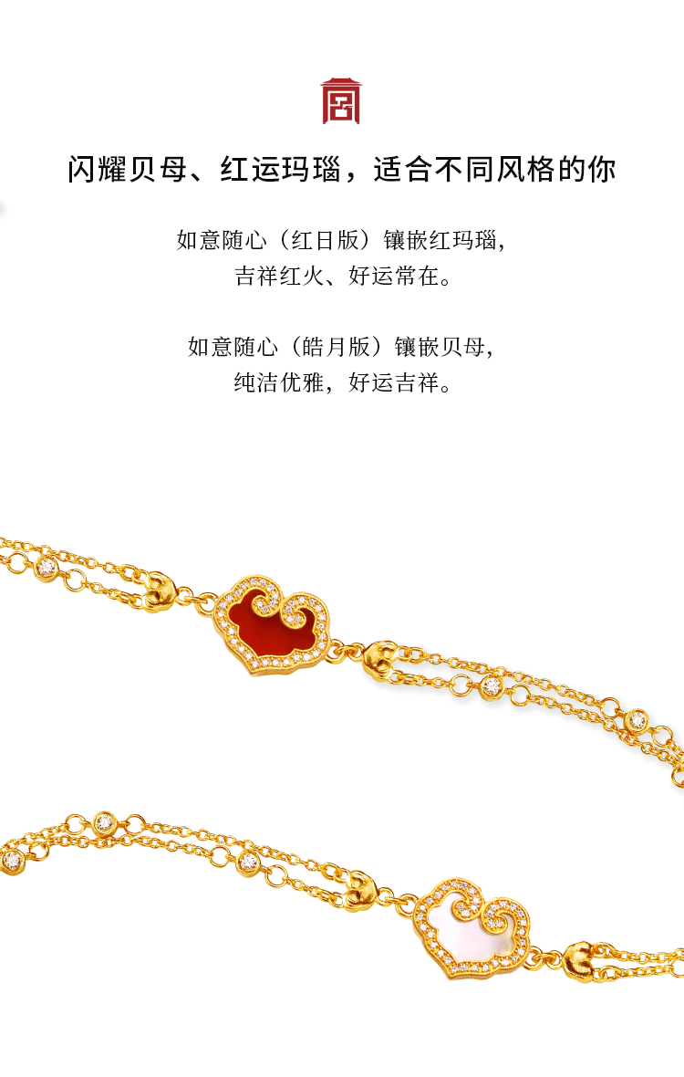 宫匠造办 如意随心手链 黄金镶贝母红玛瑙
