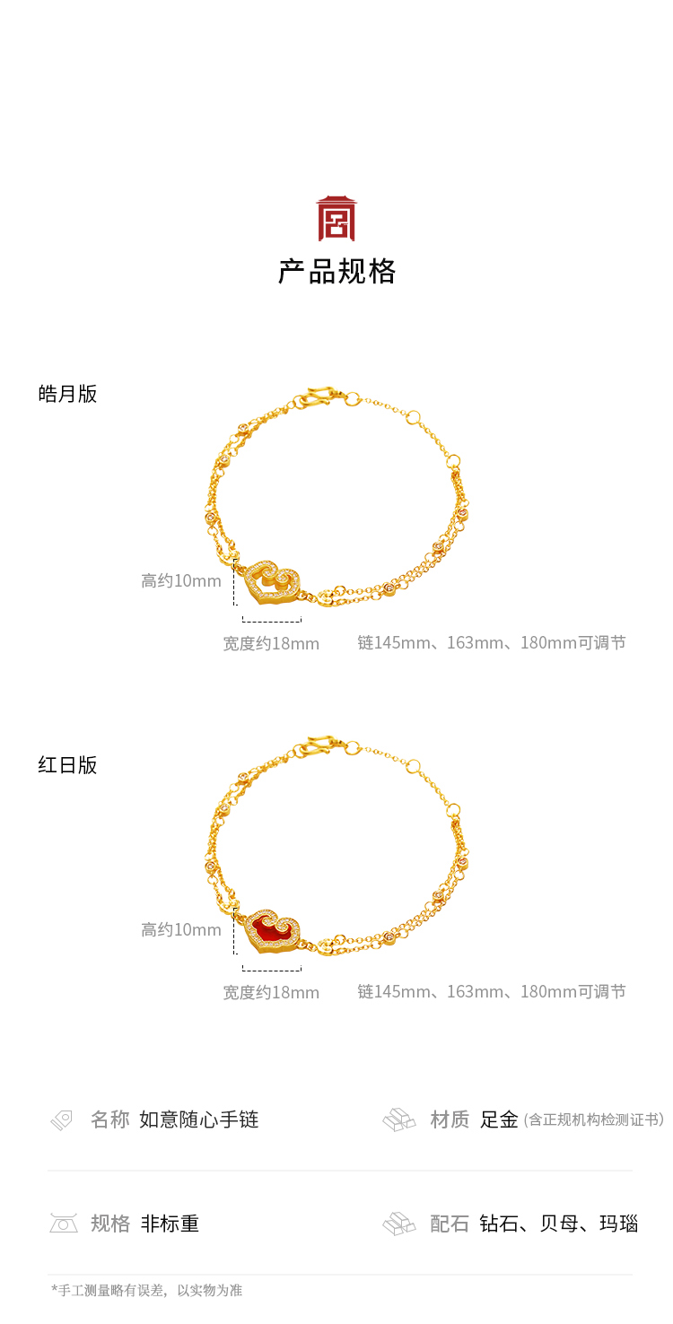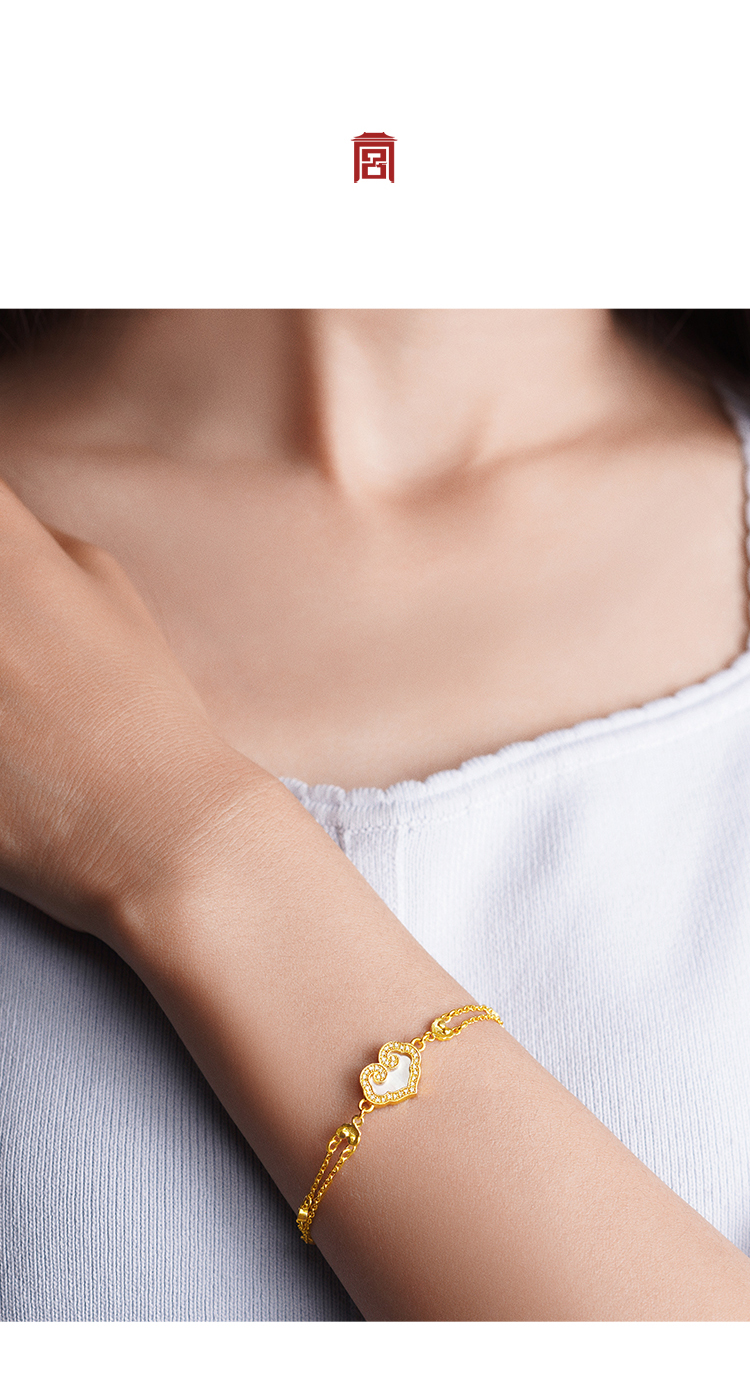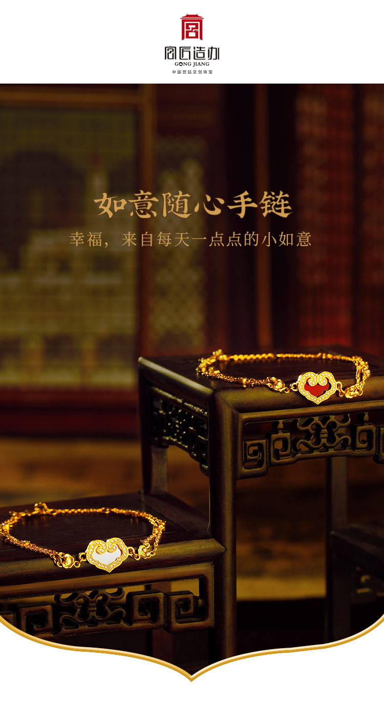 宫匠造办 如意随心手链 黄金镶贝母红玛瑙