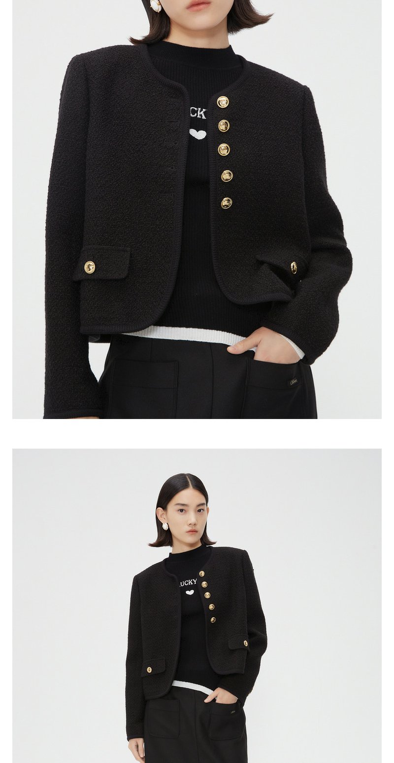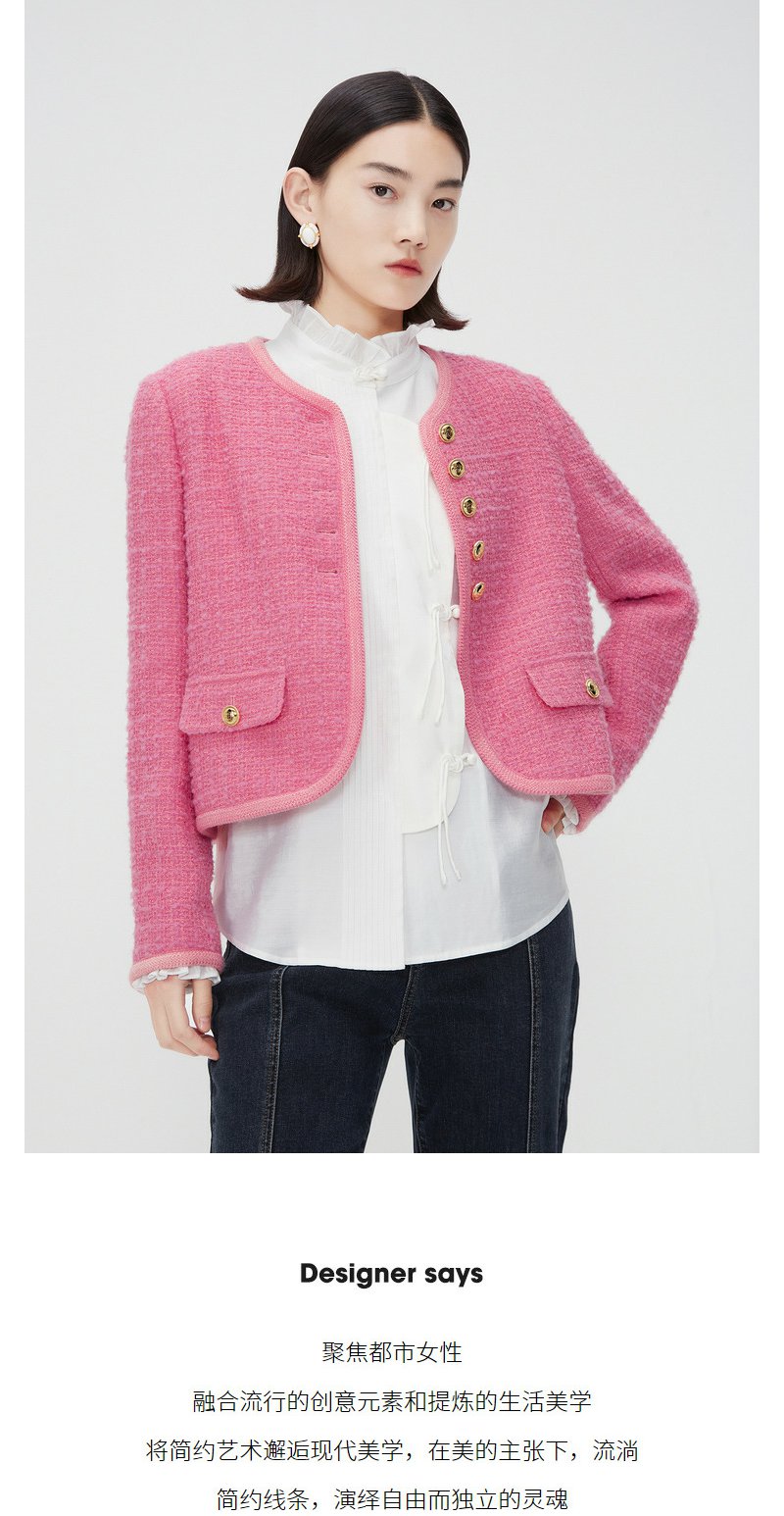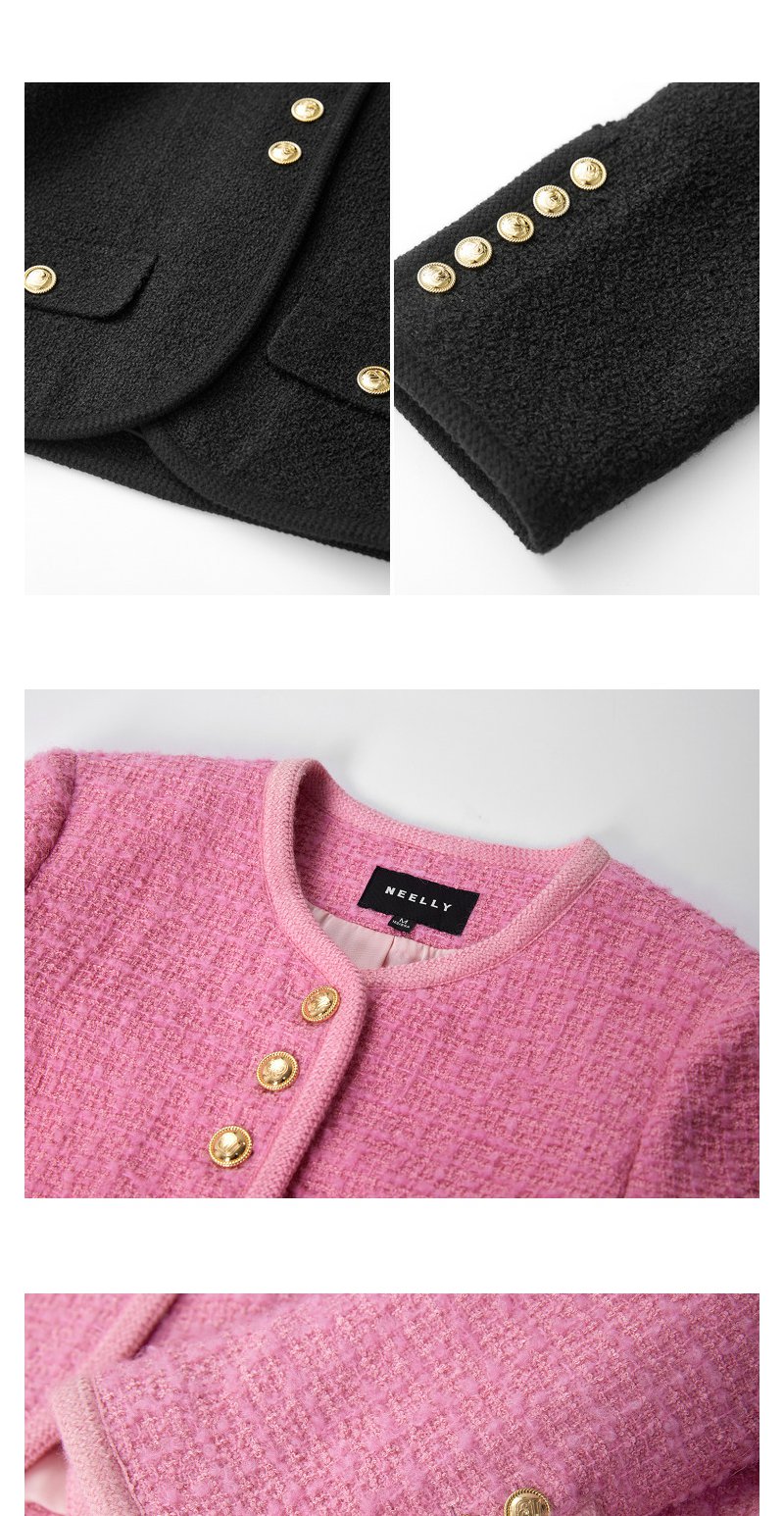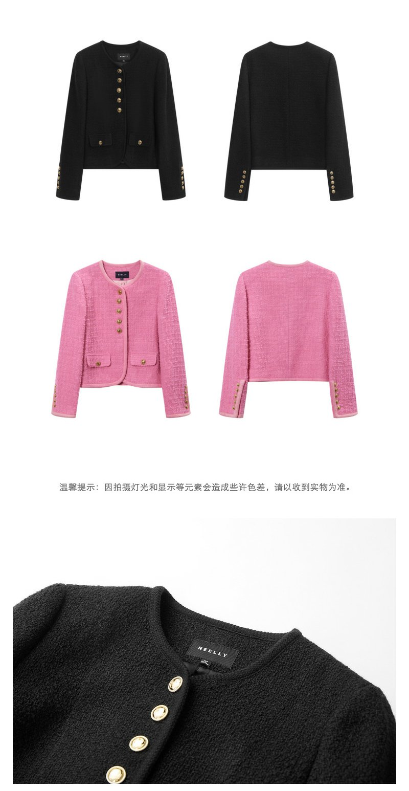 NEELLY纳俪商场同款春季千金甜美小香风短外套女精致粗花呢短上衣N24011C01012