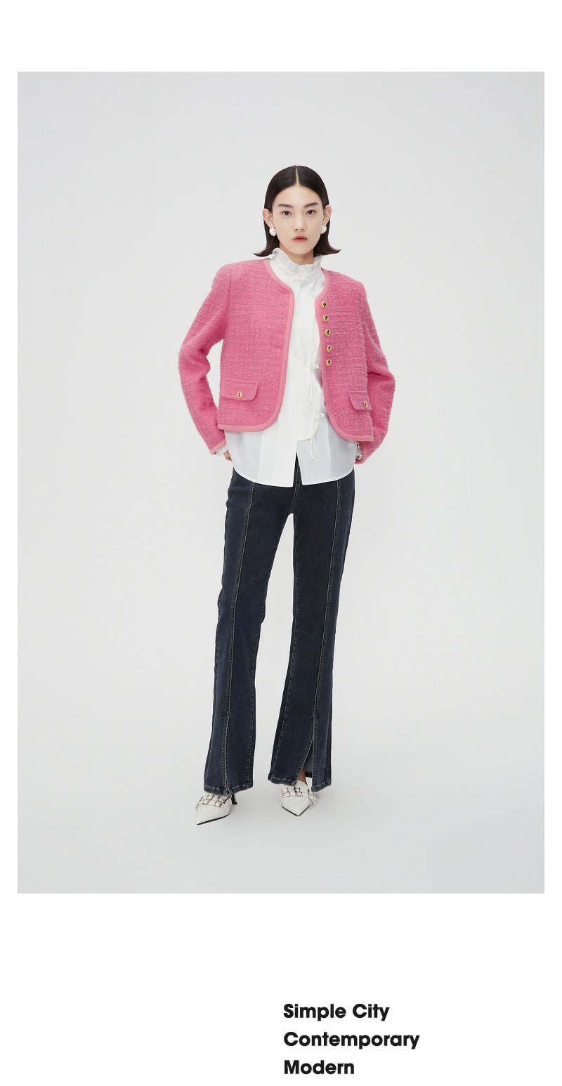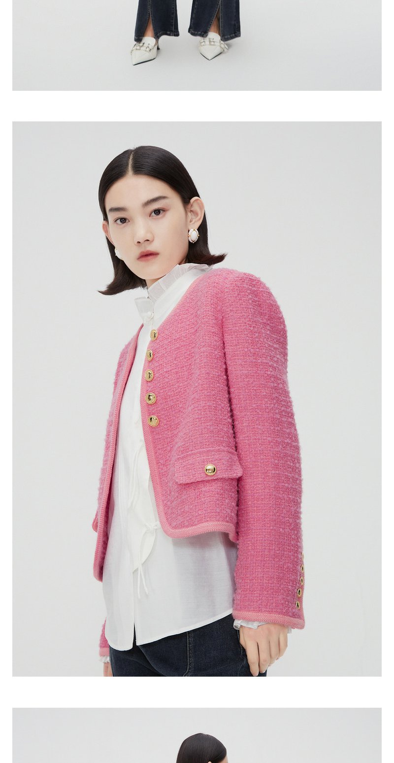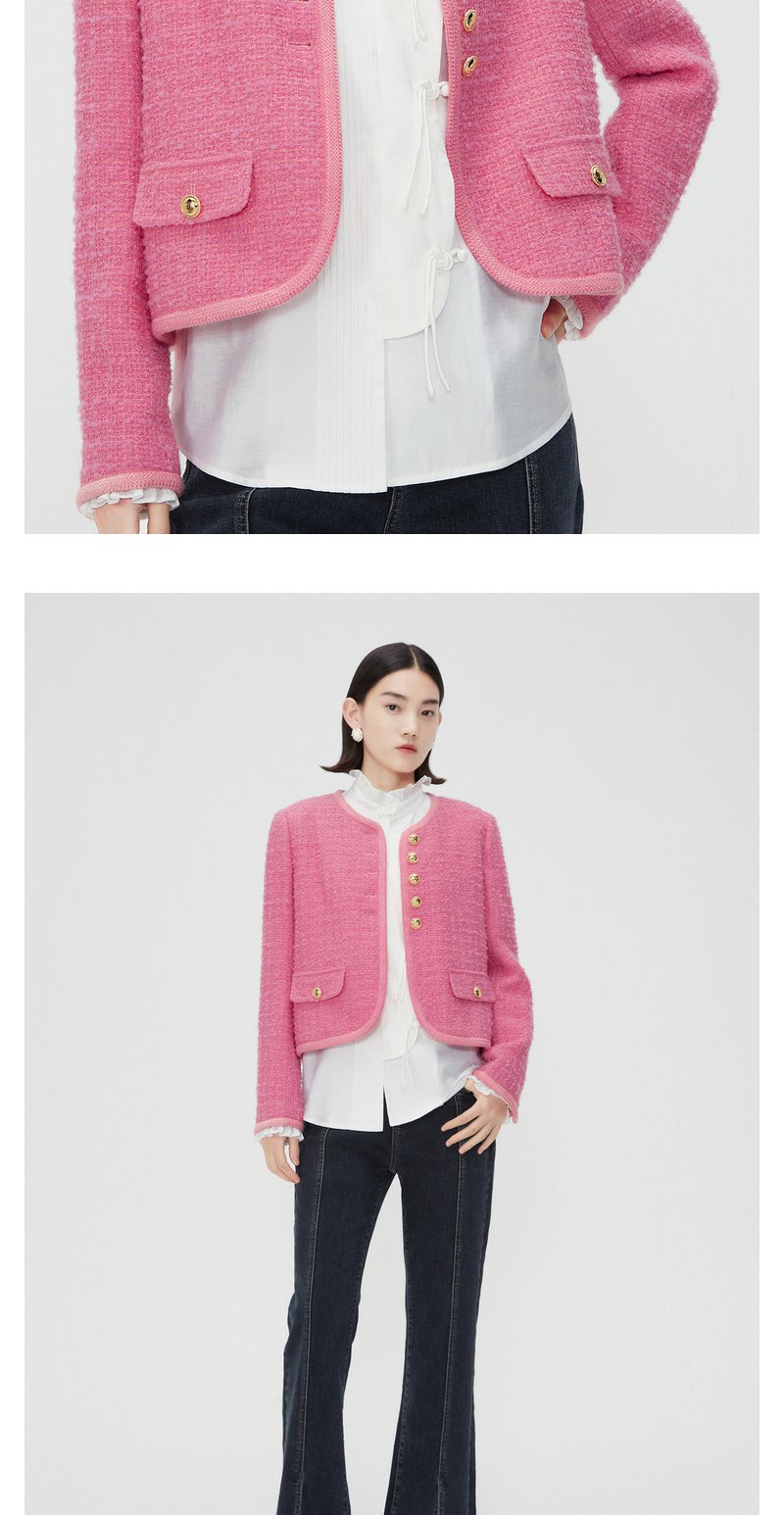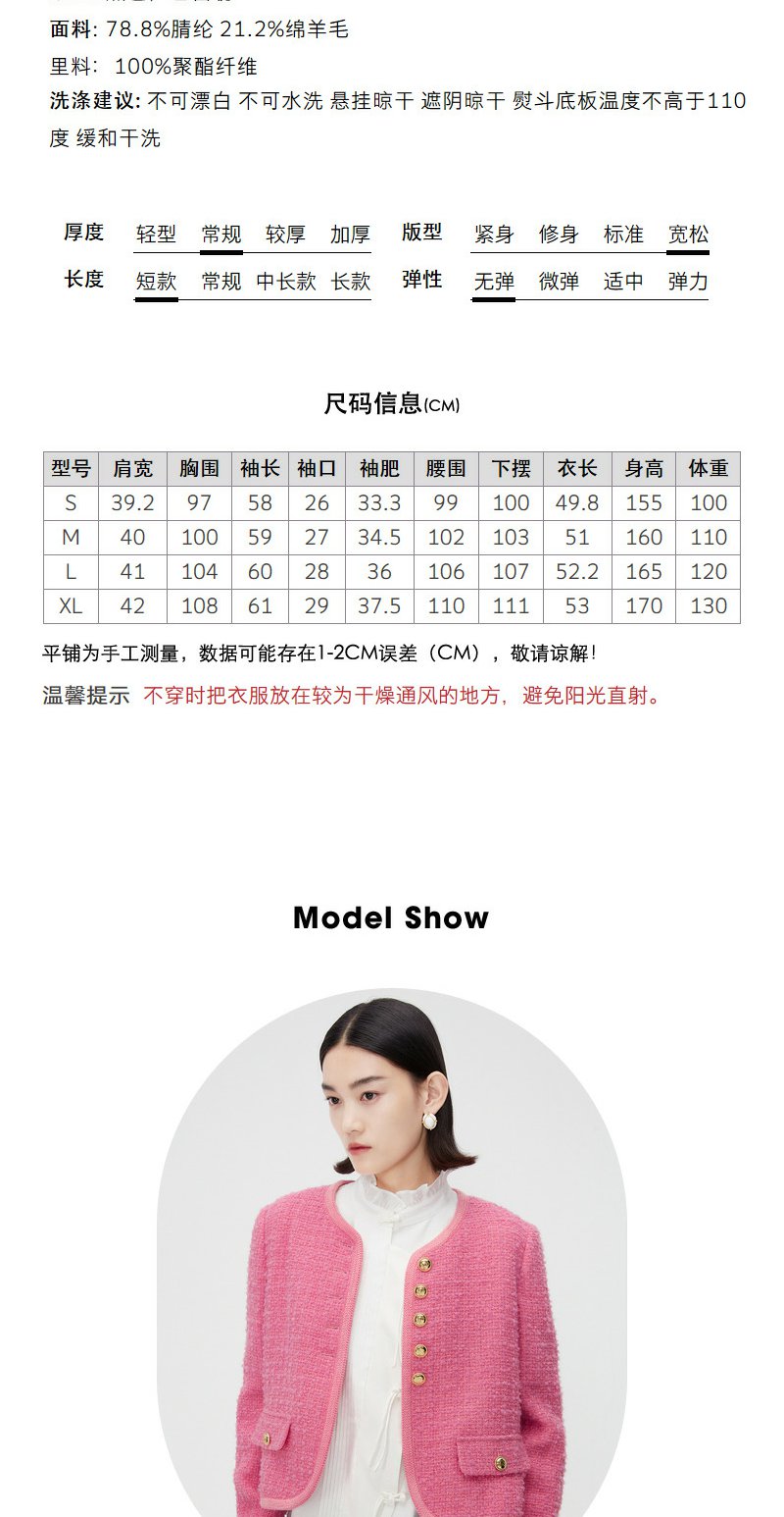 NEELLY纳俪商场同款春季千金甜美小香风短外套女精致粗花呢短上衣N24011C01012