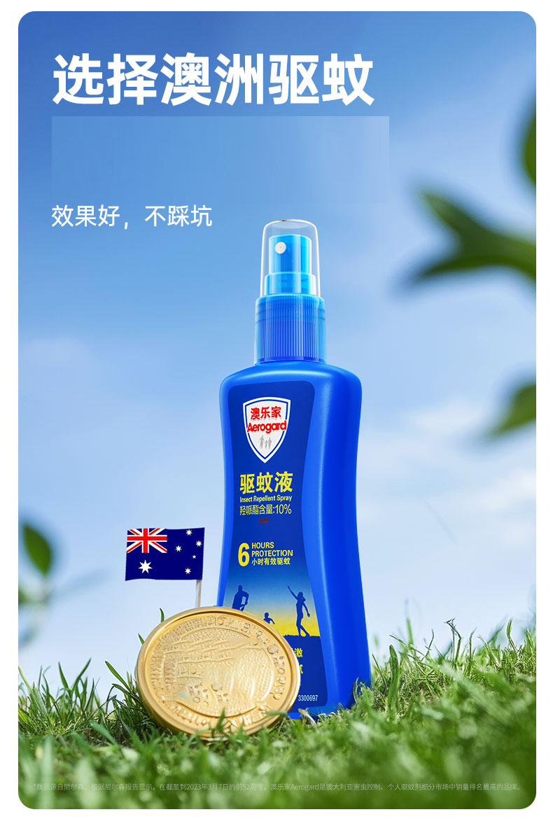 【云优选】澳洲进口Aerogard澳乐家驱蚊液喷雾 派卡瑞丁10% 家用户外防蚊水无味低刺激 宝宝可用