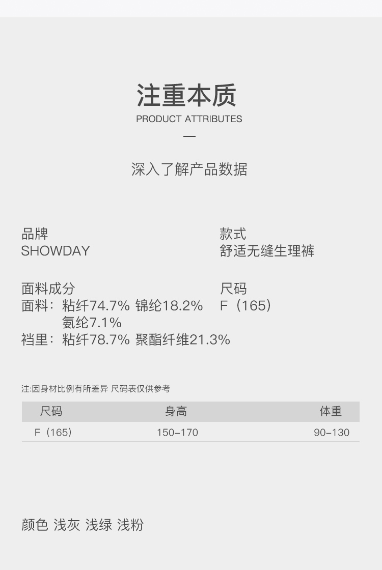 【满4条/7.5折】(中版)【秀黛】女舒适无缝生理裤女士内裤【1条】S5333043T【门店同款】【内裤非质量问题不退换】