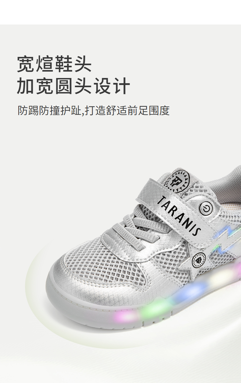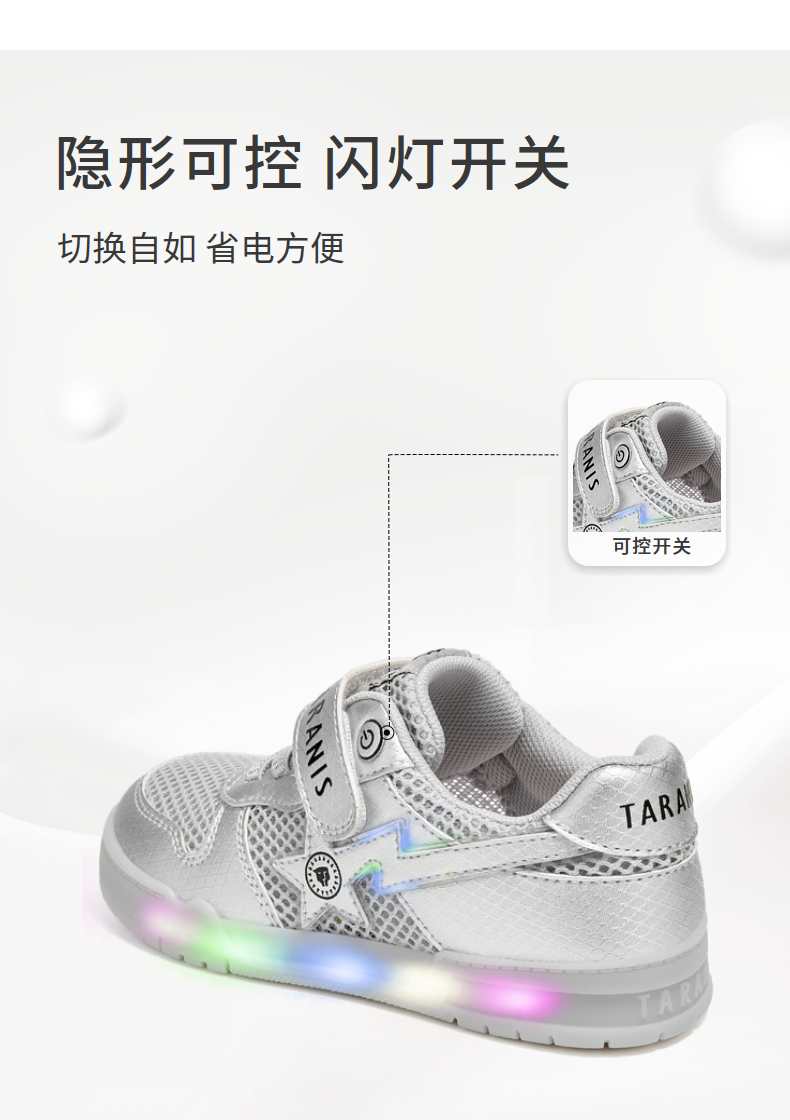 泰兰尼斯春季新款童鞋防滑软底女童板鞋网布透气发光鞋男童闪灯鞋 T02X5A5982