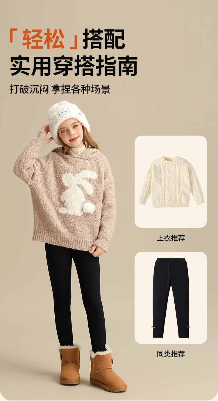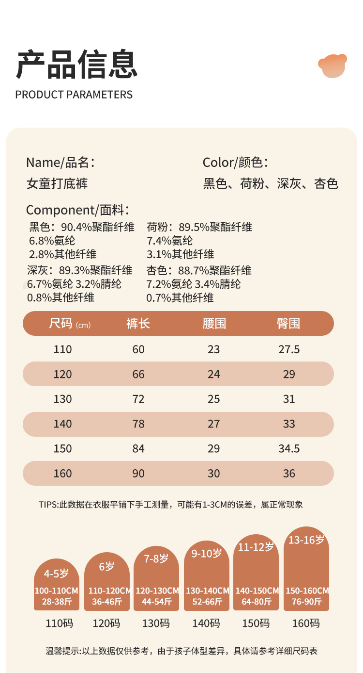 【双面磨绒】【110-160】【精典泰迪】女童冬款保暖磨绒打底裤
