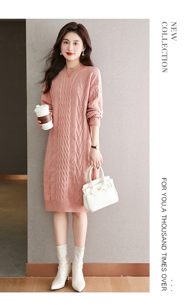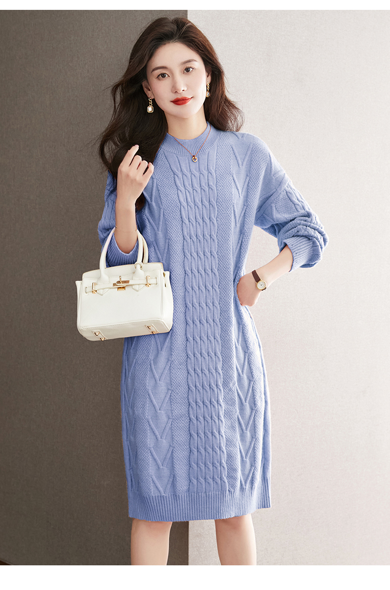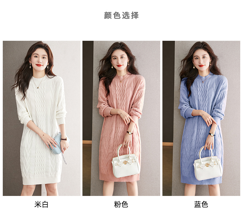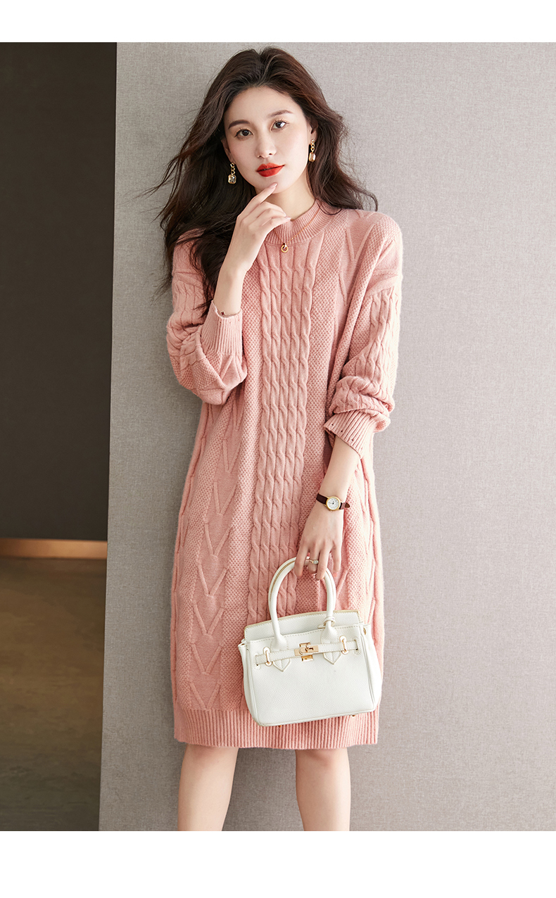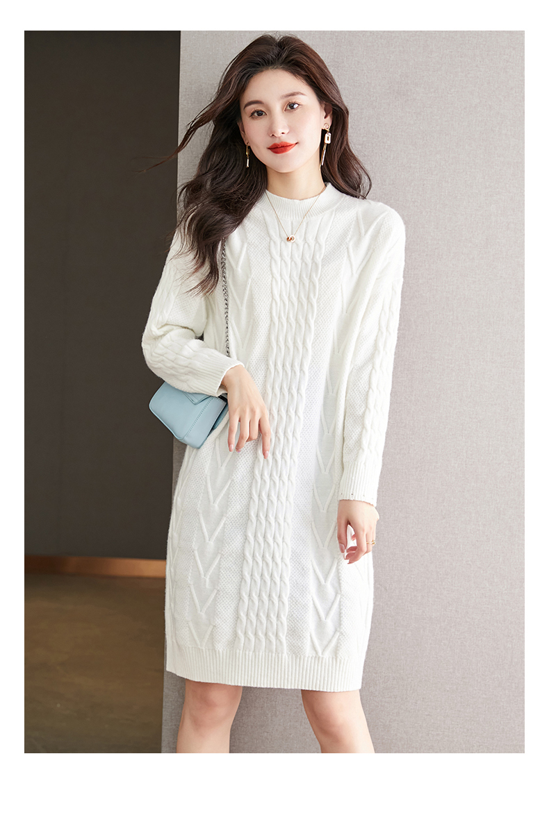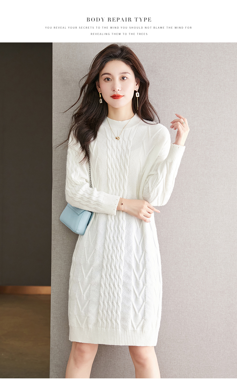 中长款绞花毛衣裙,加厚配大衣内搭裙直筒针织裙CC-22-5102