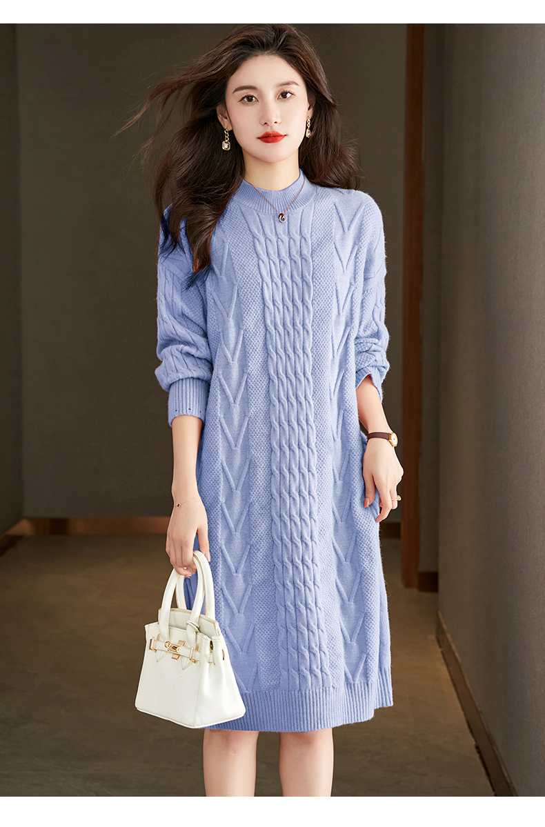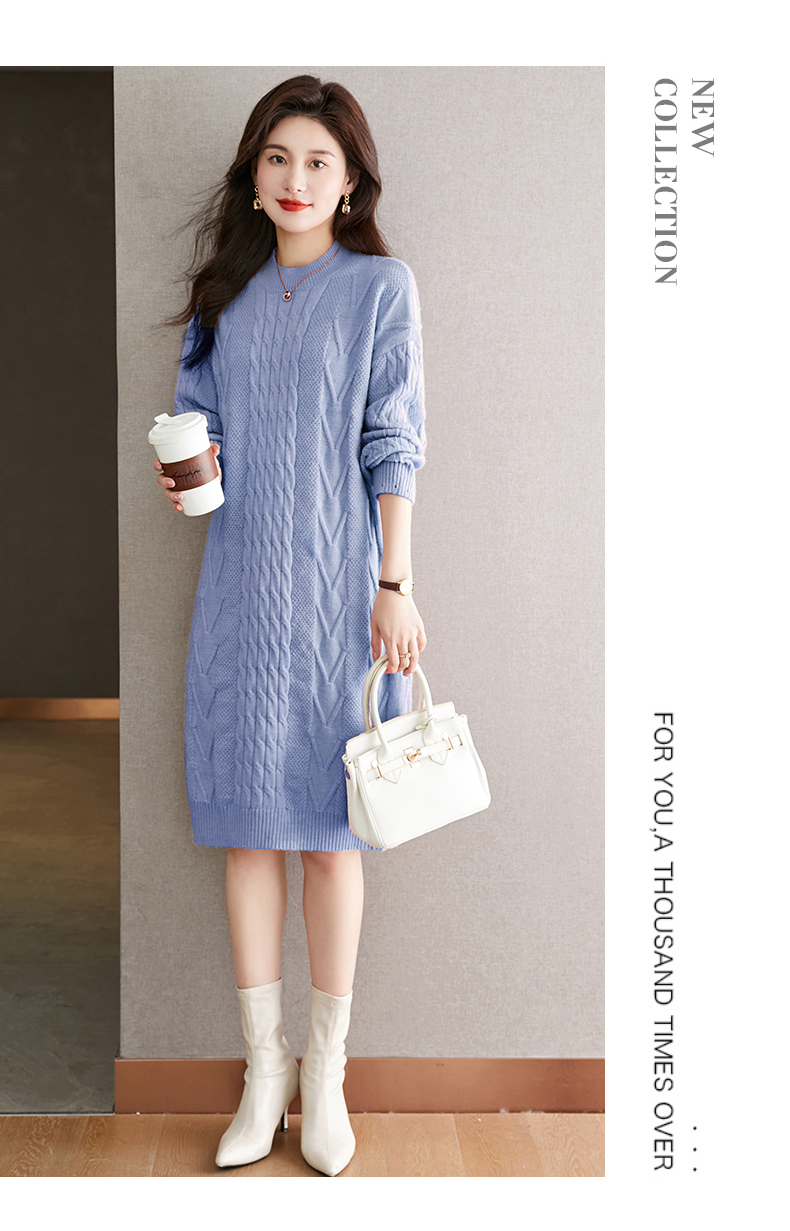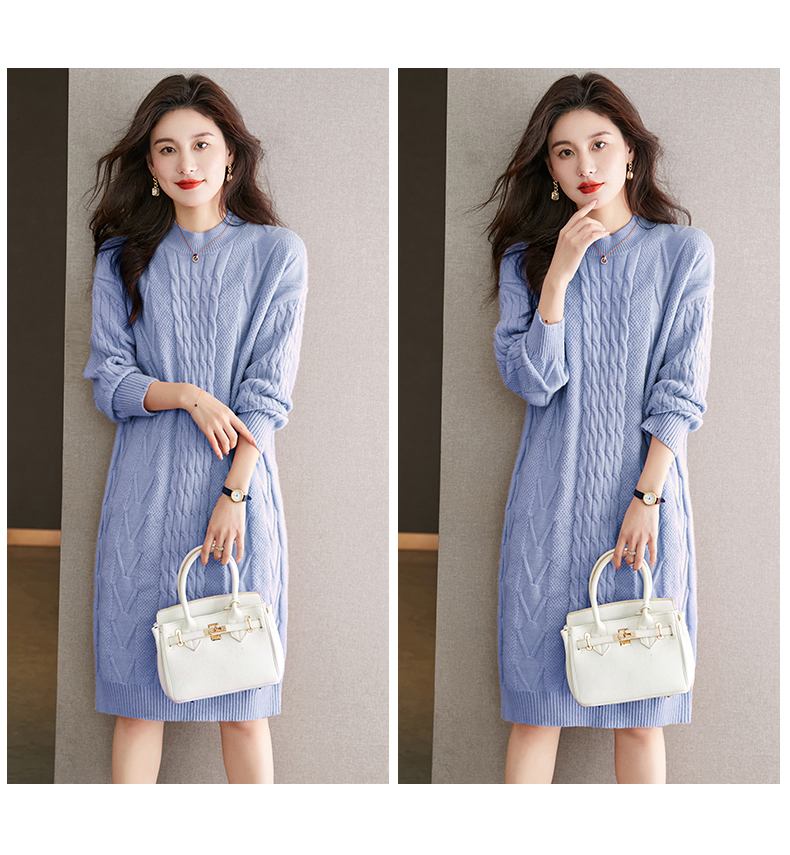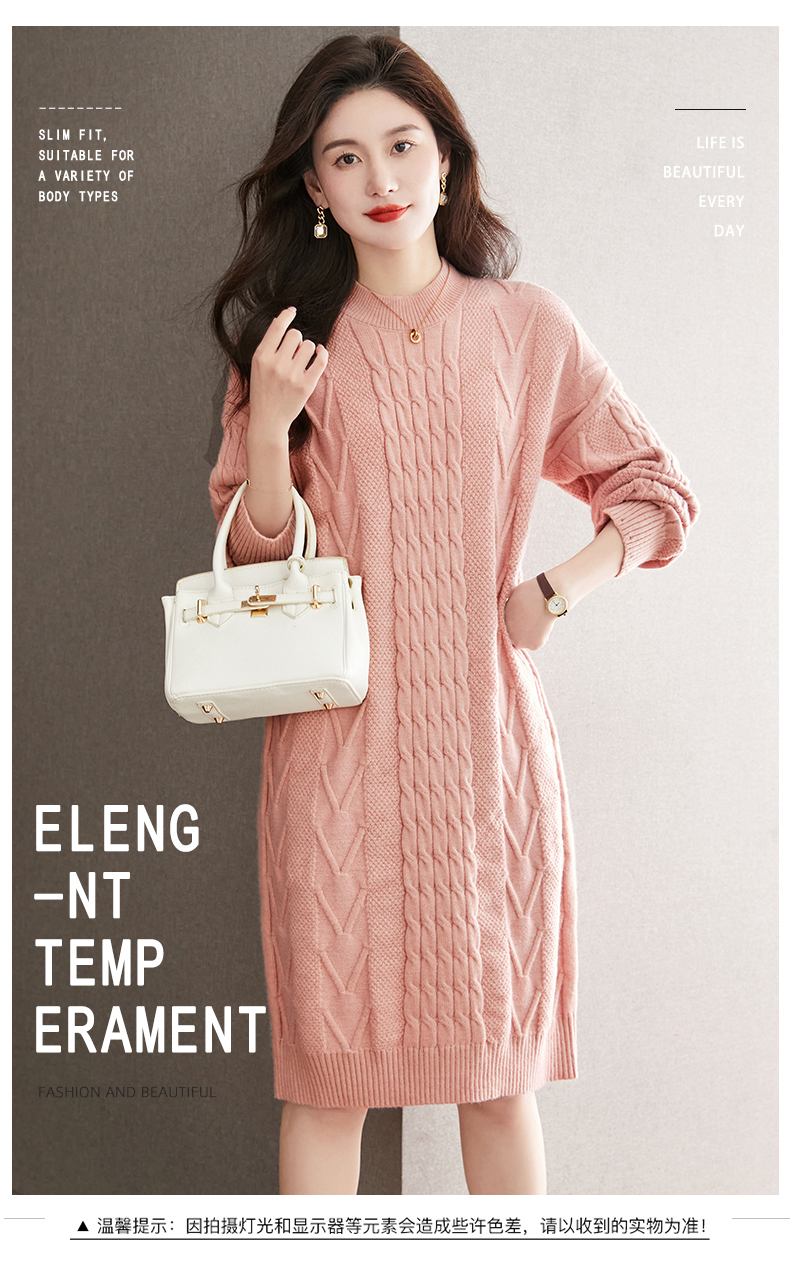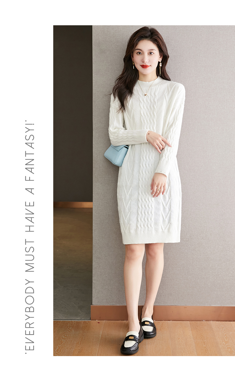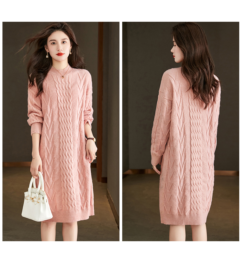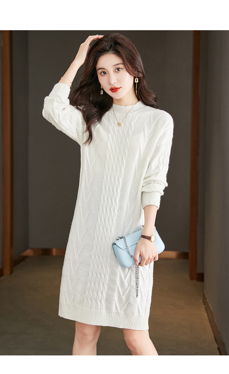 中长款绞花毛衣裙,加厚配大衣内搭裙直筒针织裙CC-22-5102