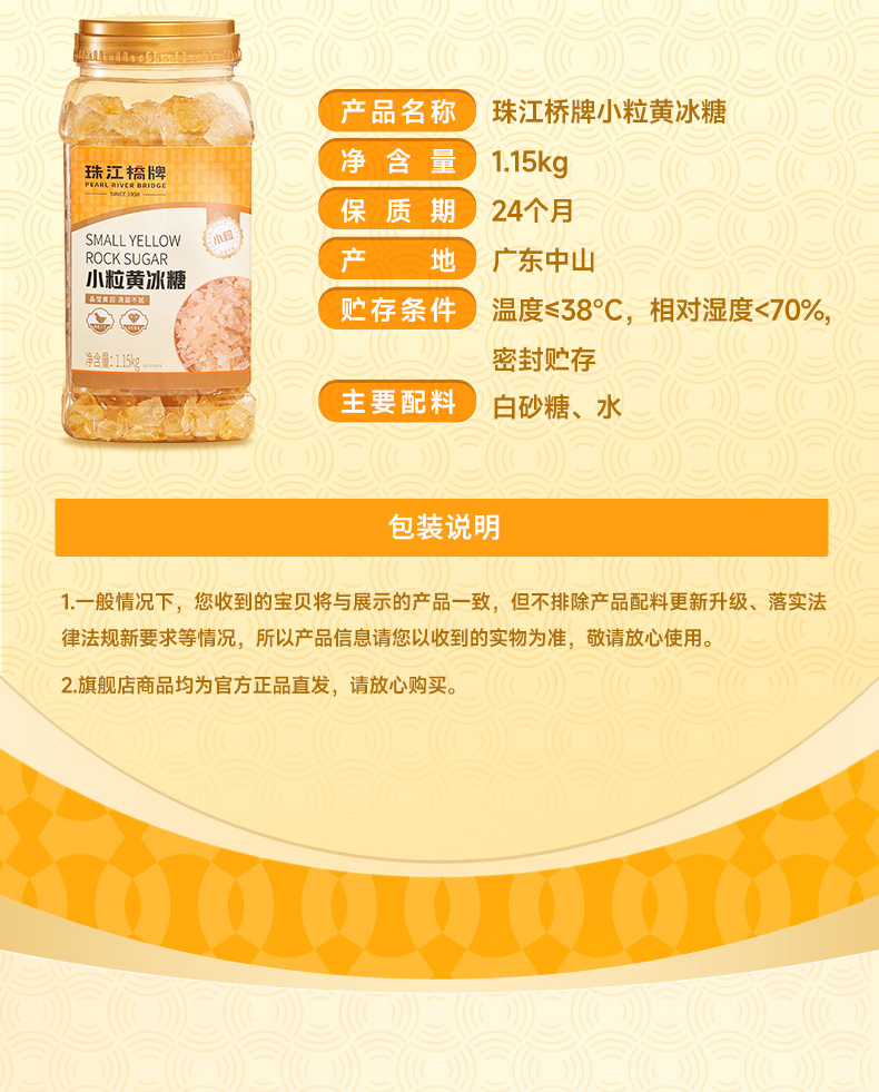珠江桥牌 小粒黄冰糖1.15kg罐装 1罐/2罐