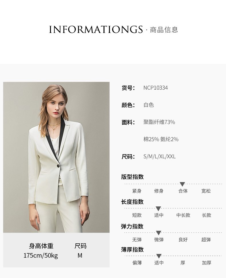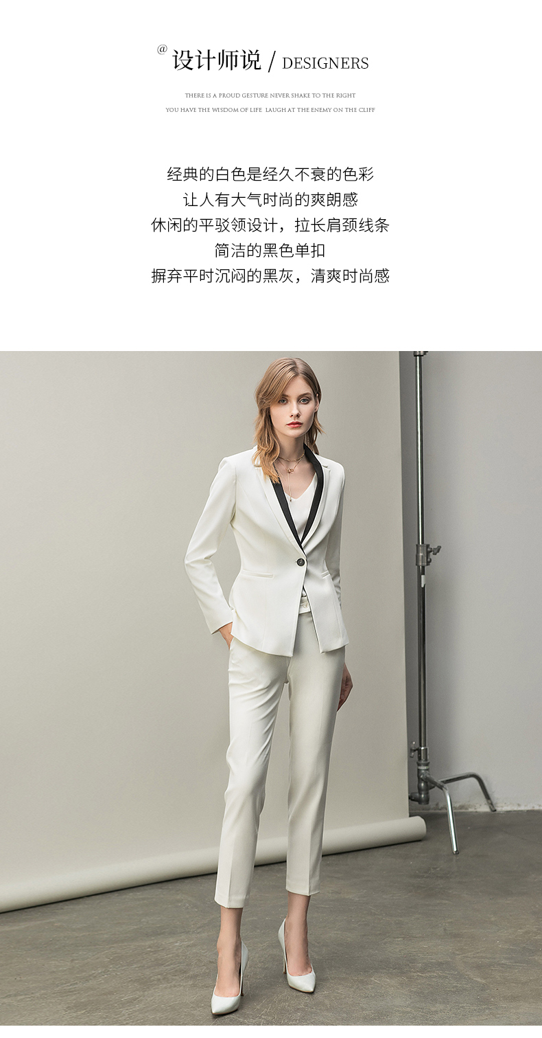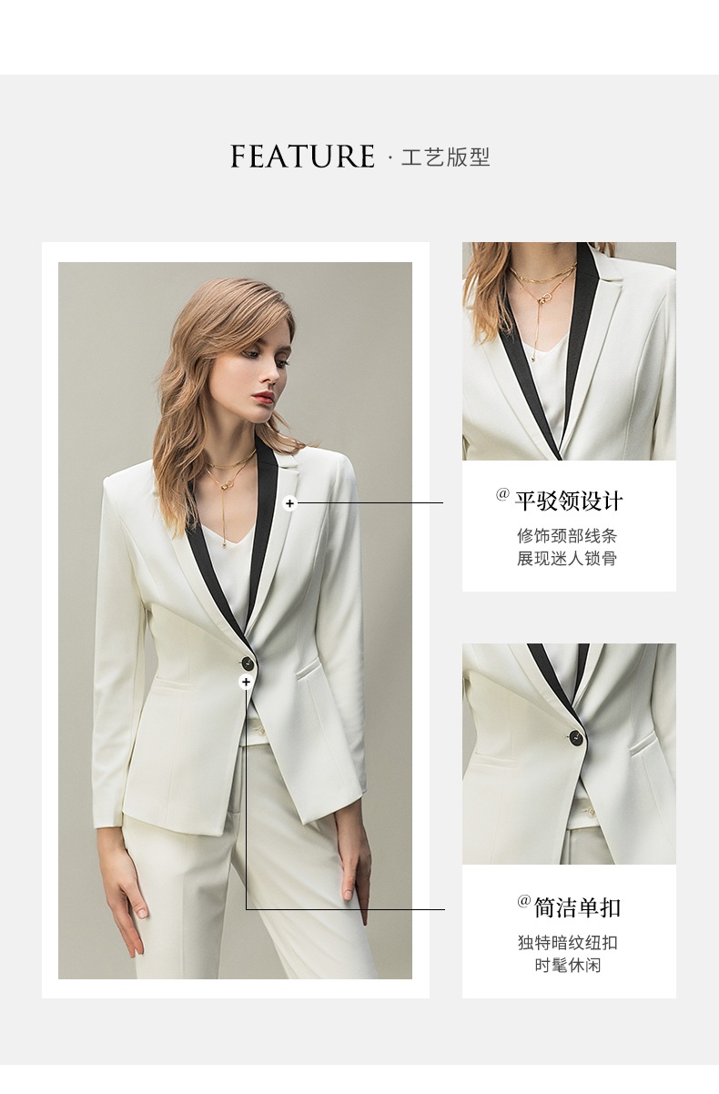 IWY/白色黑色拼接领单粒扣都市时尚职业女士西服套装西装白领工作服CP10334