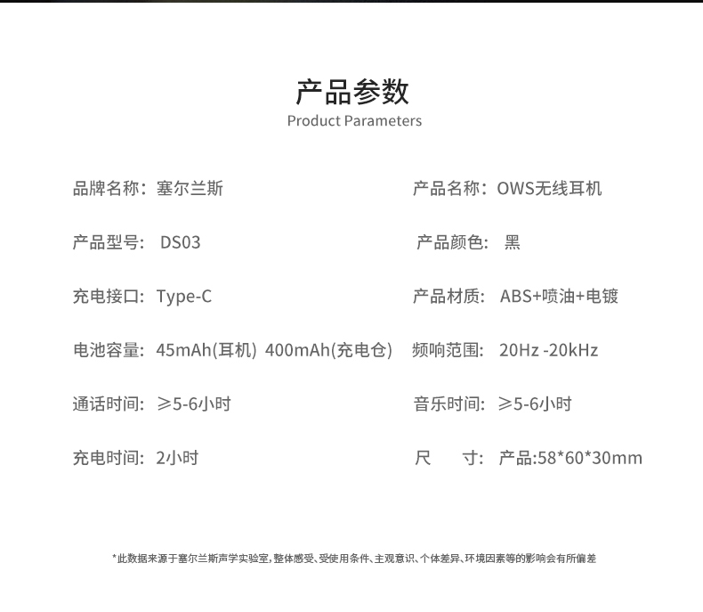 塞尔兰斯 DS03蓝牙耳机 OWS重低音运动音乐无线蓝牙耳机 商务通话