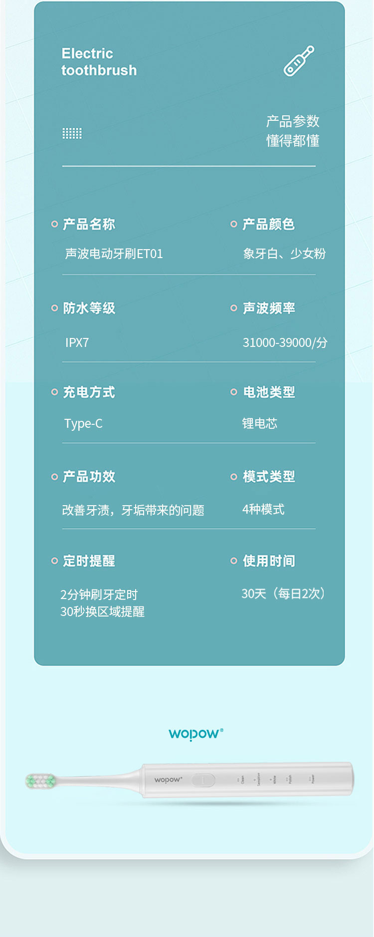 沃品电动牙刷 ET01