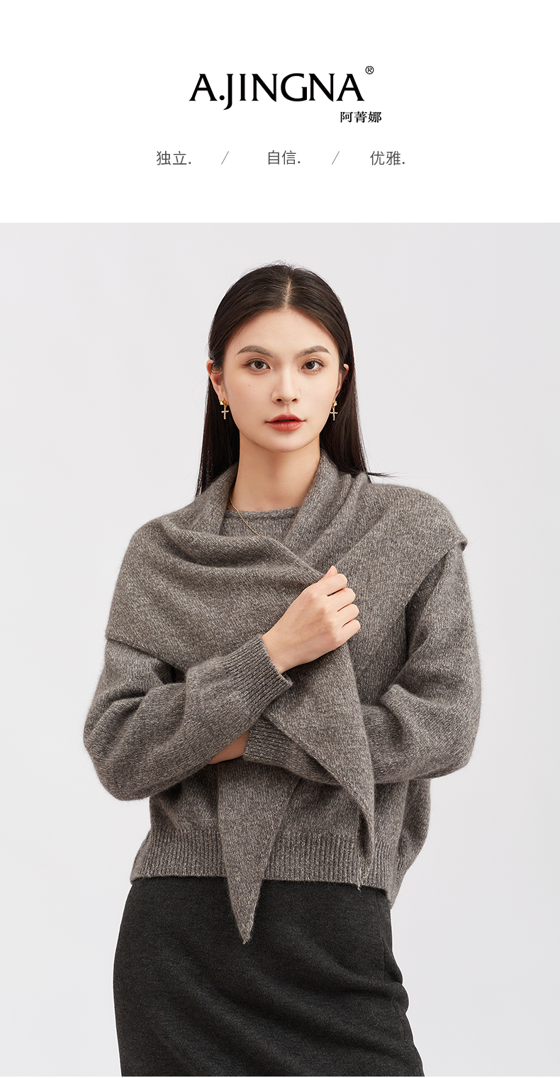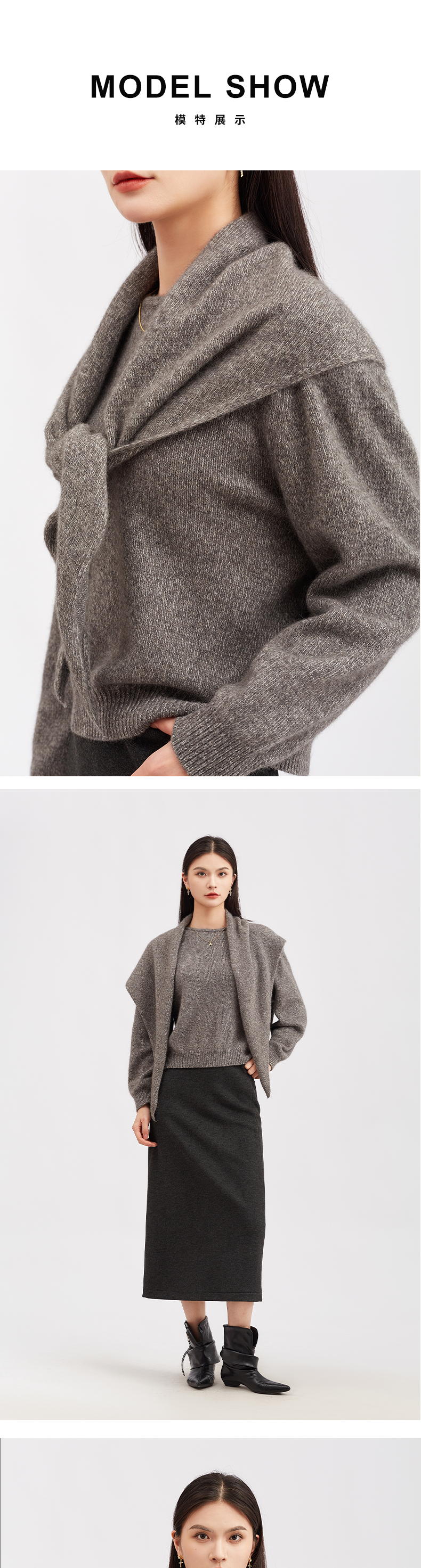 【软糯质感】阿菁娜花纱灰针织披肩软糯质感简约的设计慵懒氛围感F30D320012
