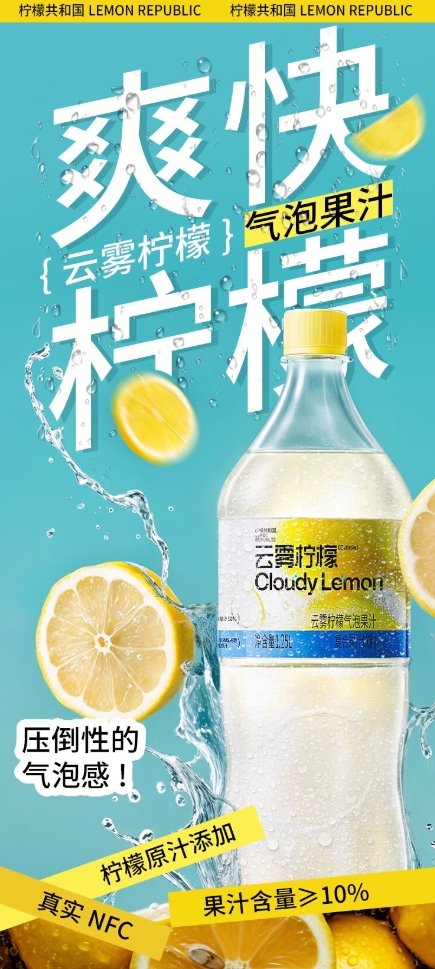 柠檬共和国云雾柠檬气泡果汁1.25L