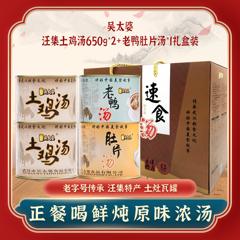 采购下架【助农】江城百臻吴太婆汪集鸡鸭肚片汤混合装650g*4