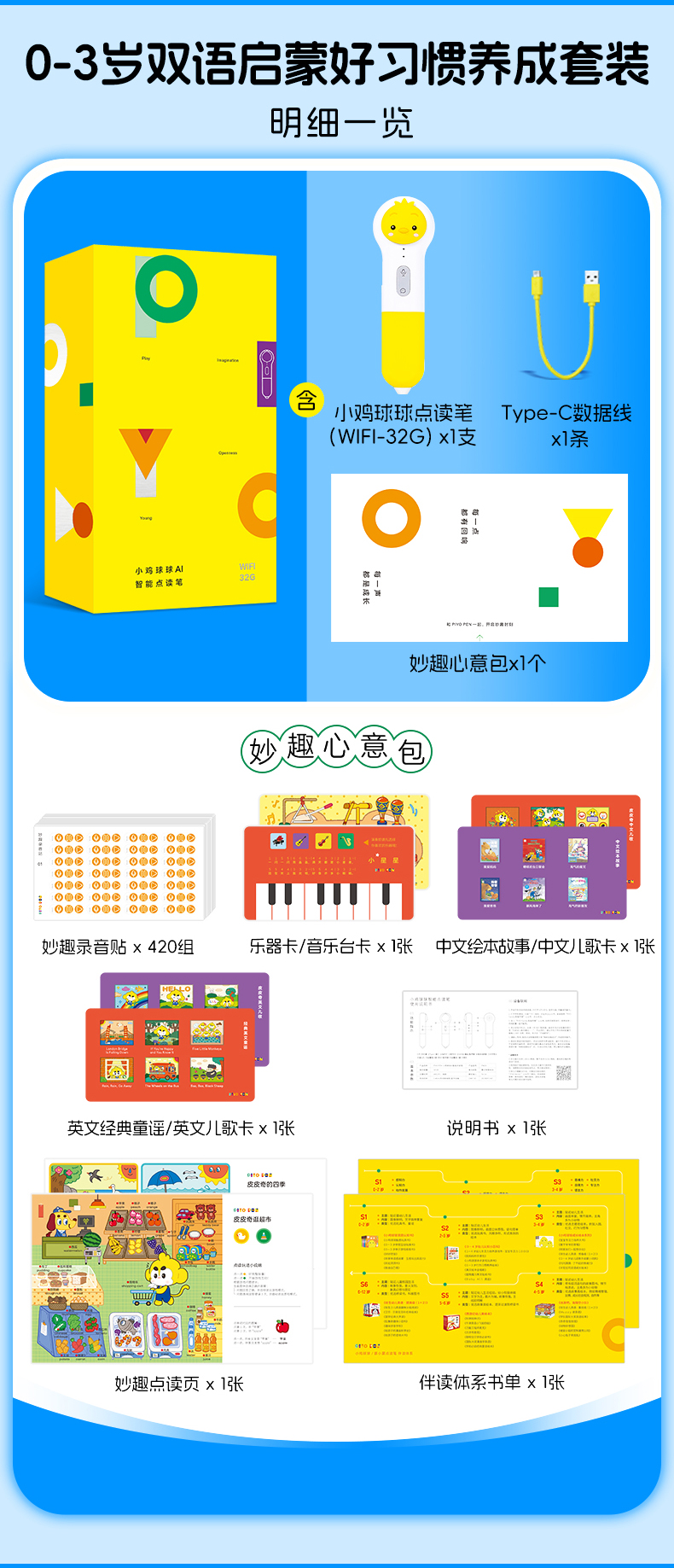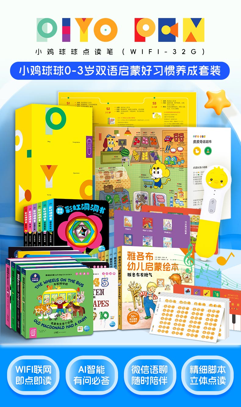 小鸡球球32G WiFi智能点读笔-0-3岁双语启蒙好习惯养成套装