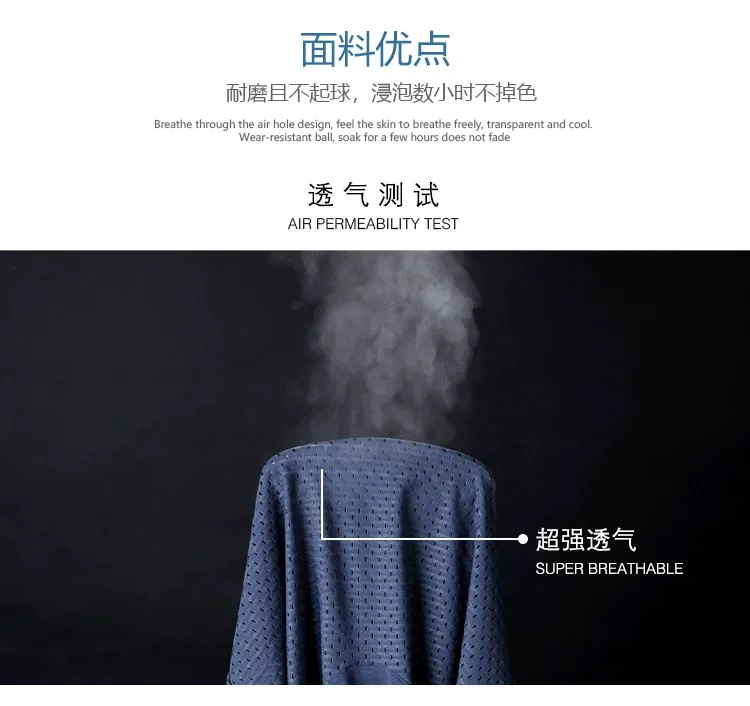 1:冰丝触感,网眼透气。一块神奇的面料轻盈/透气/速干/亲肤,所有特点都占全