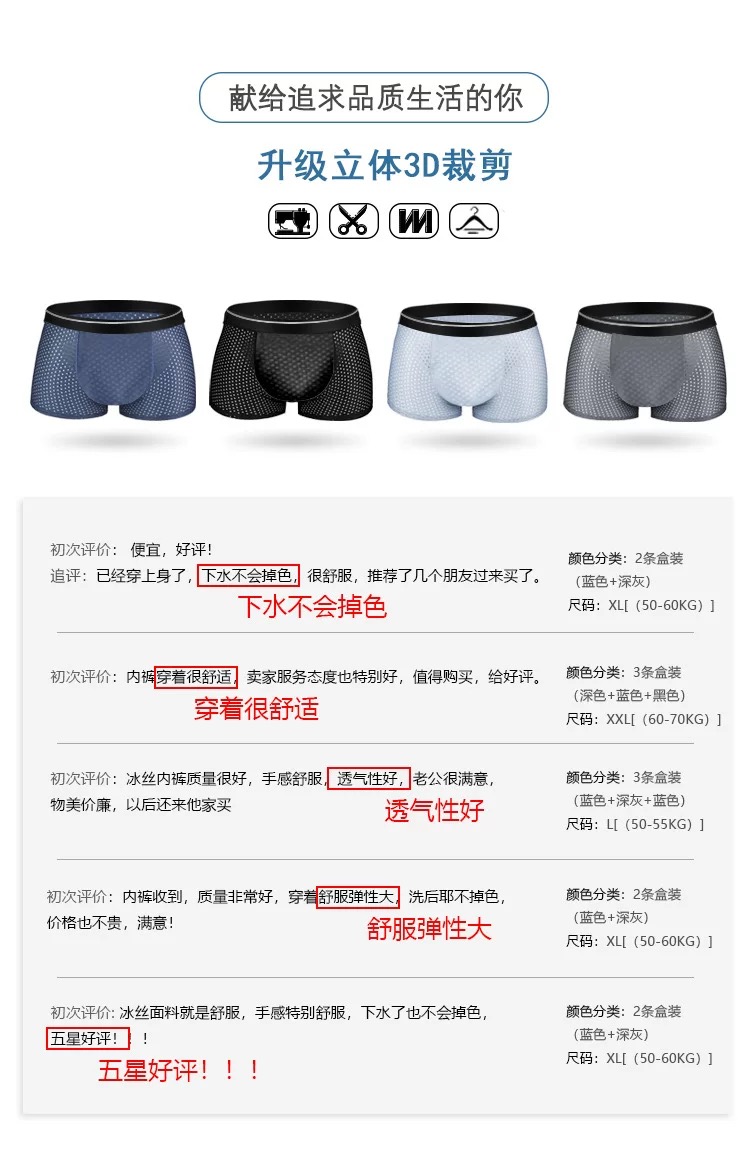 【品名】仪家男士冰丝触感网眼透气内裤4条装