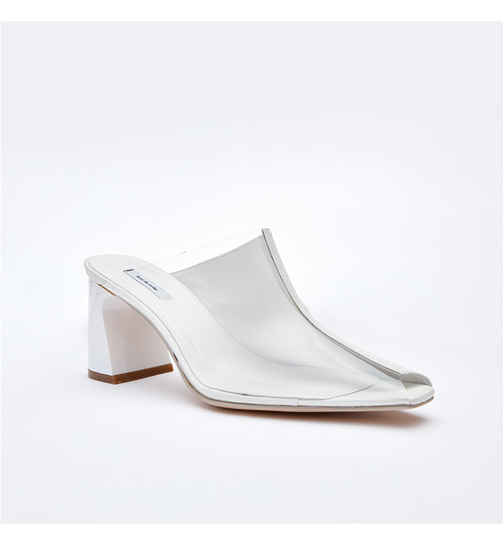 新年闪购lost in echo羊皮白色时尚TPU拼色鱼嘴粗跟穆勒鞋女鞋凉鞋