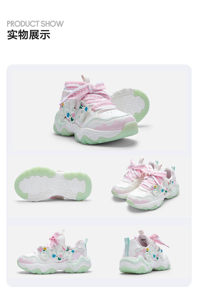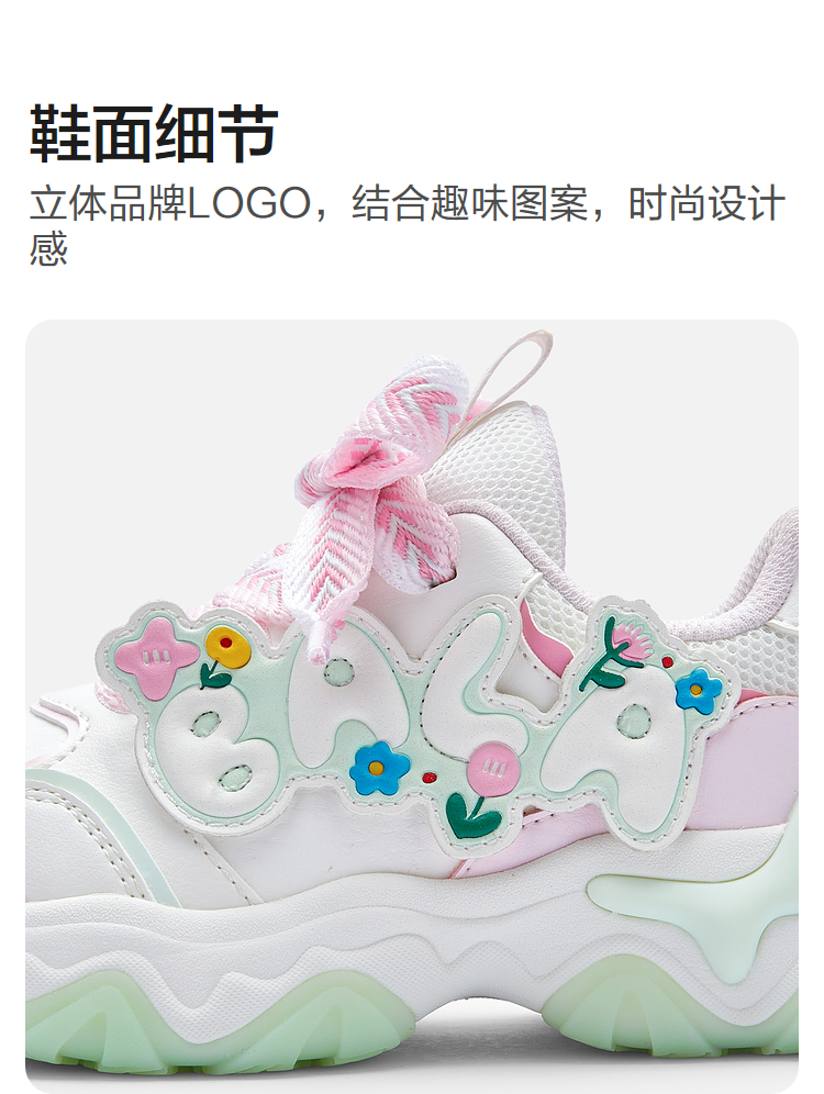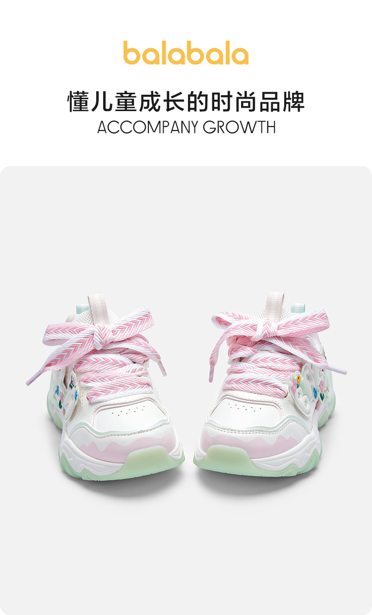 巴拉巴拉童鞋儿童运动鞋女童春秋趣味花朵透气慢跑鞋甜美舒适可爱
