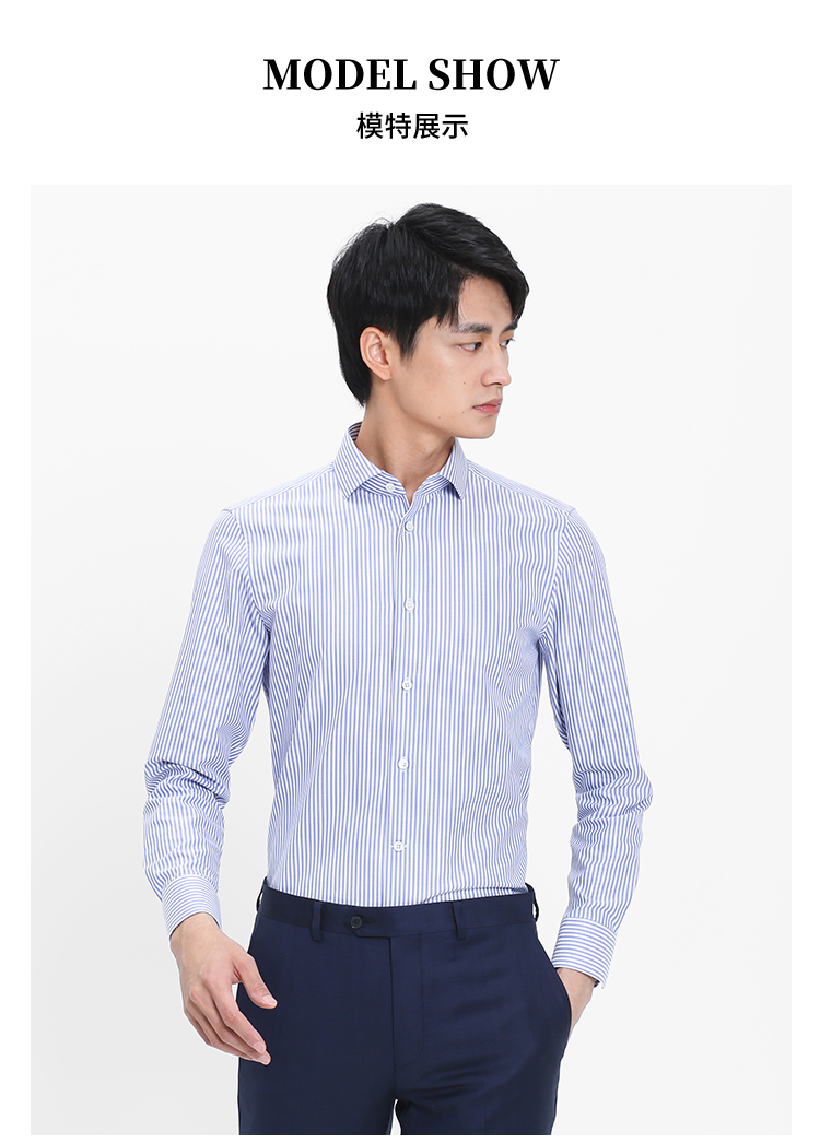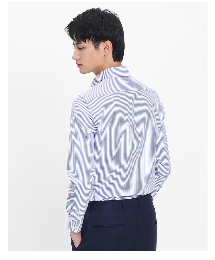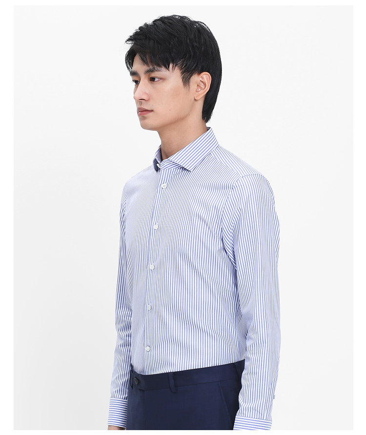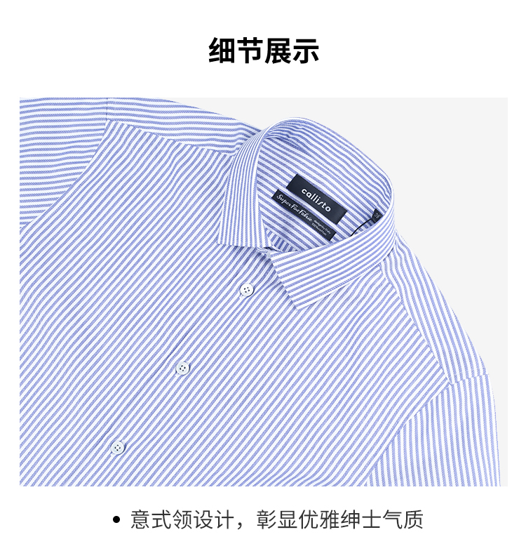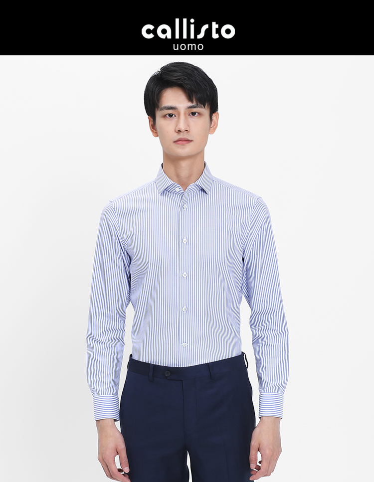 callisto蓝鱼骨巴朗斯条纹全棉意式领衬衫 SRSTL045C