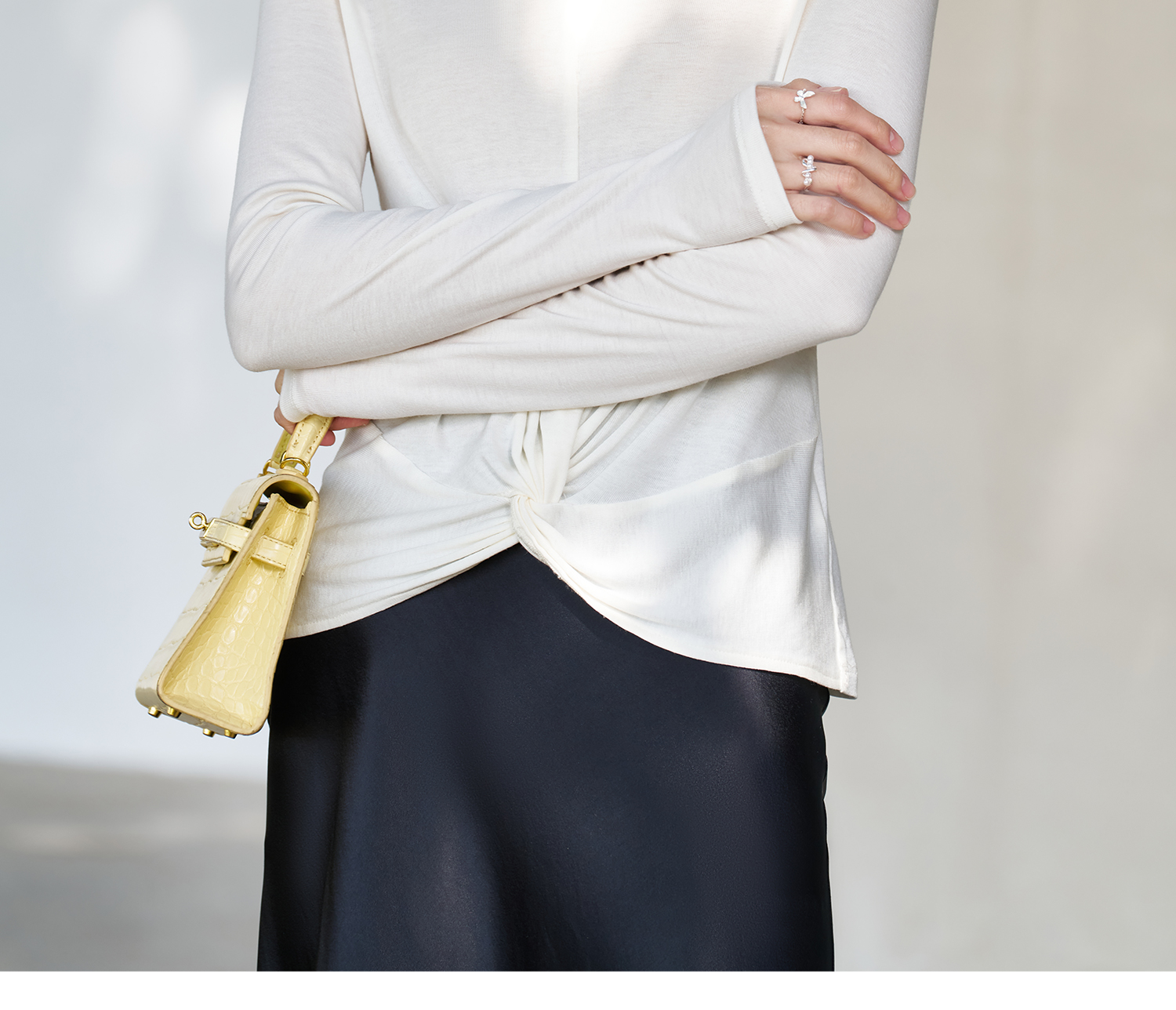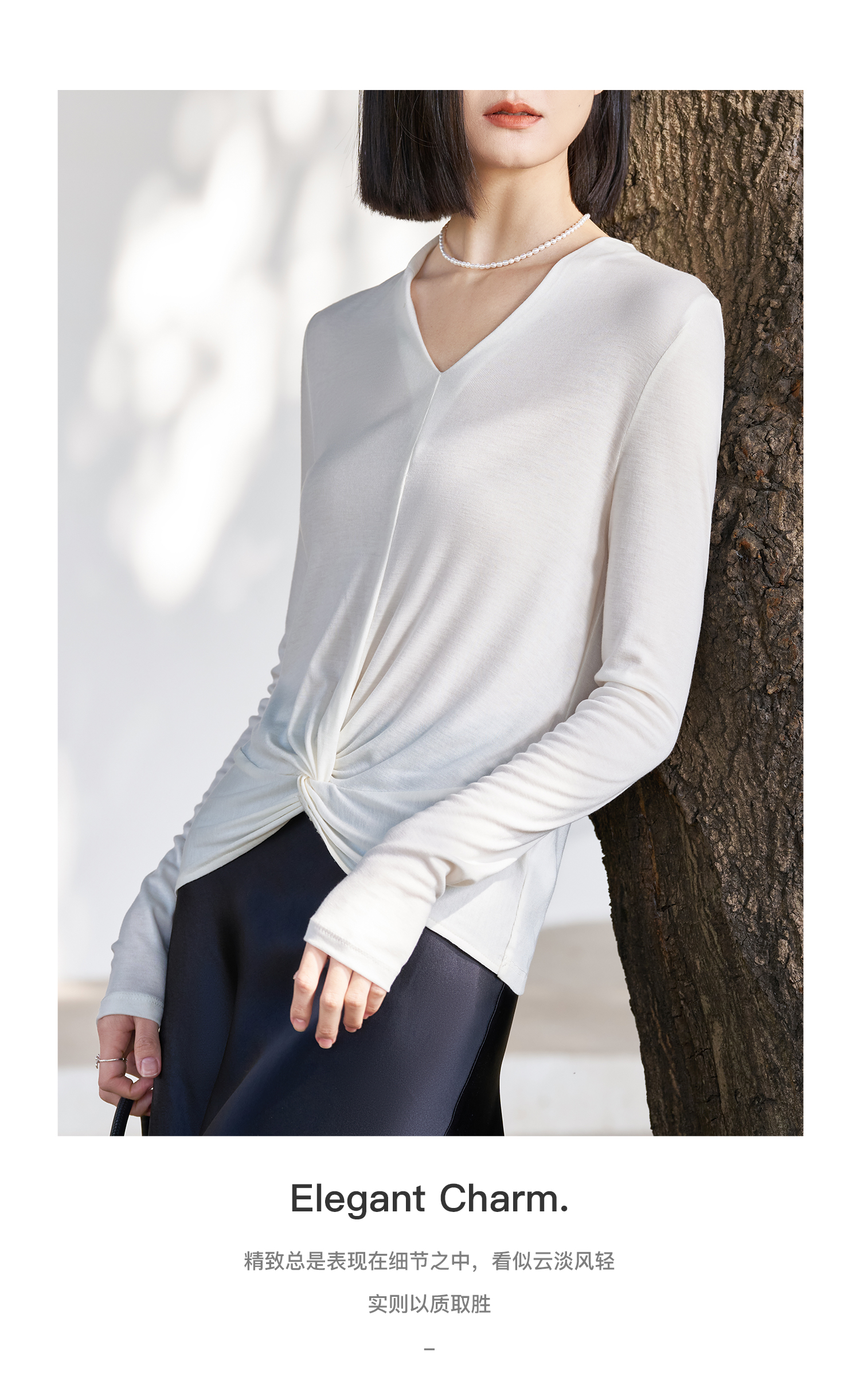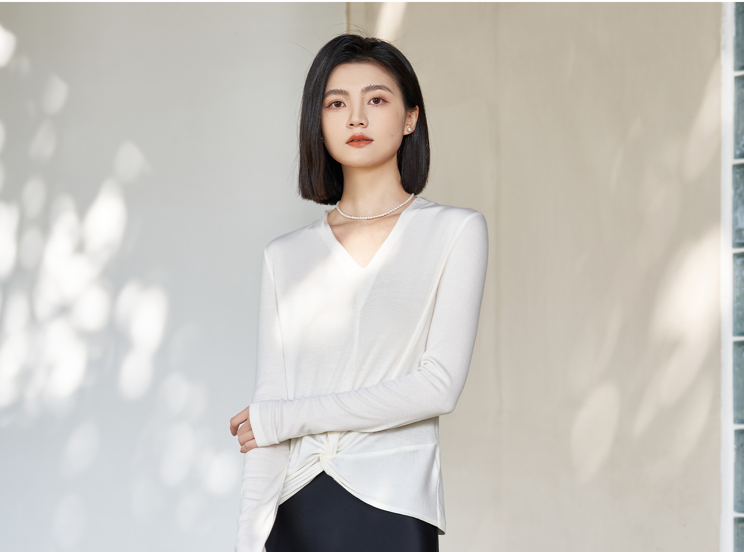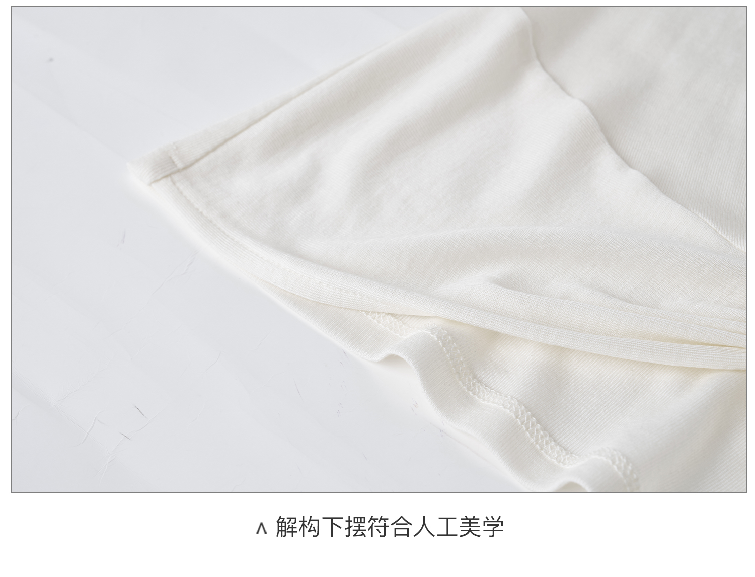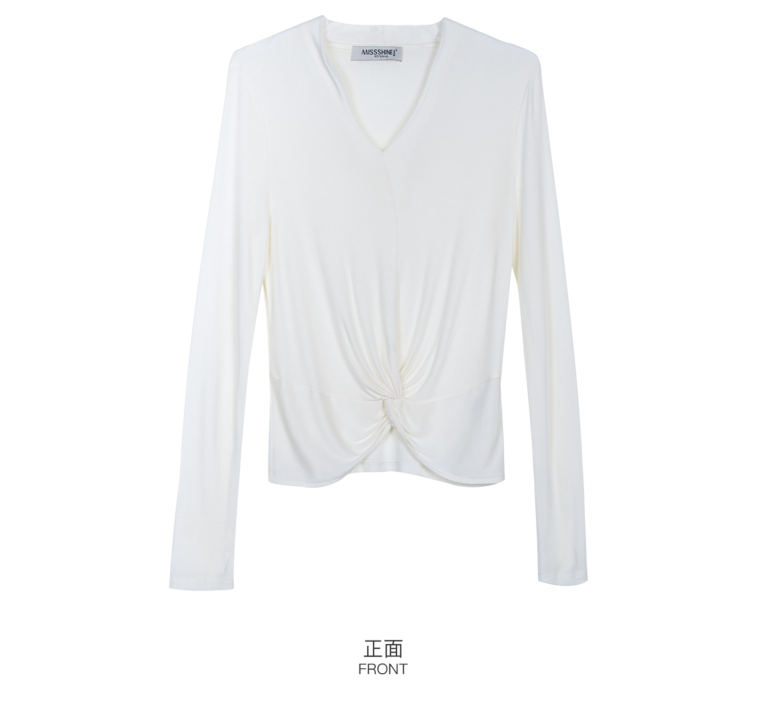米思阳2026春季新款时尚百搭天丝蚕丝混纺T恤交叉设计下摆上衣女5516
