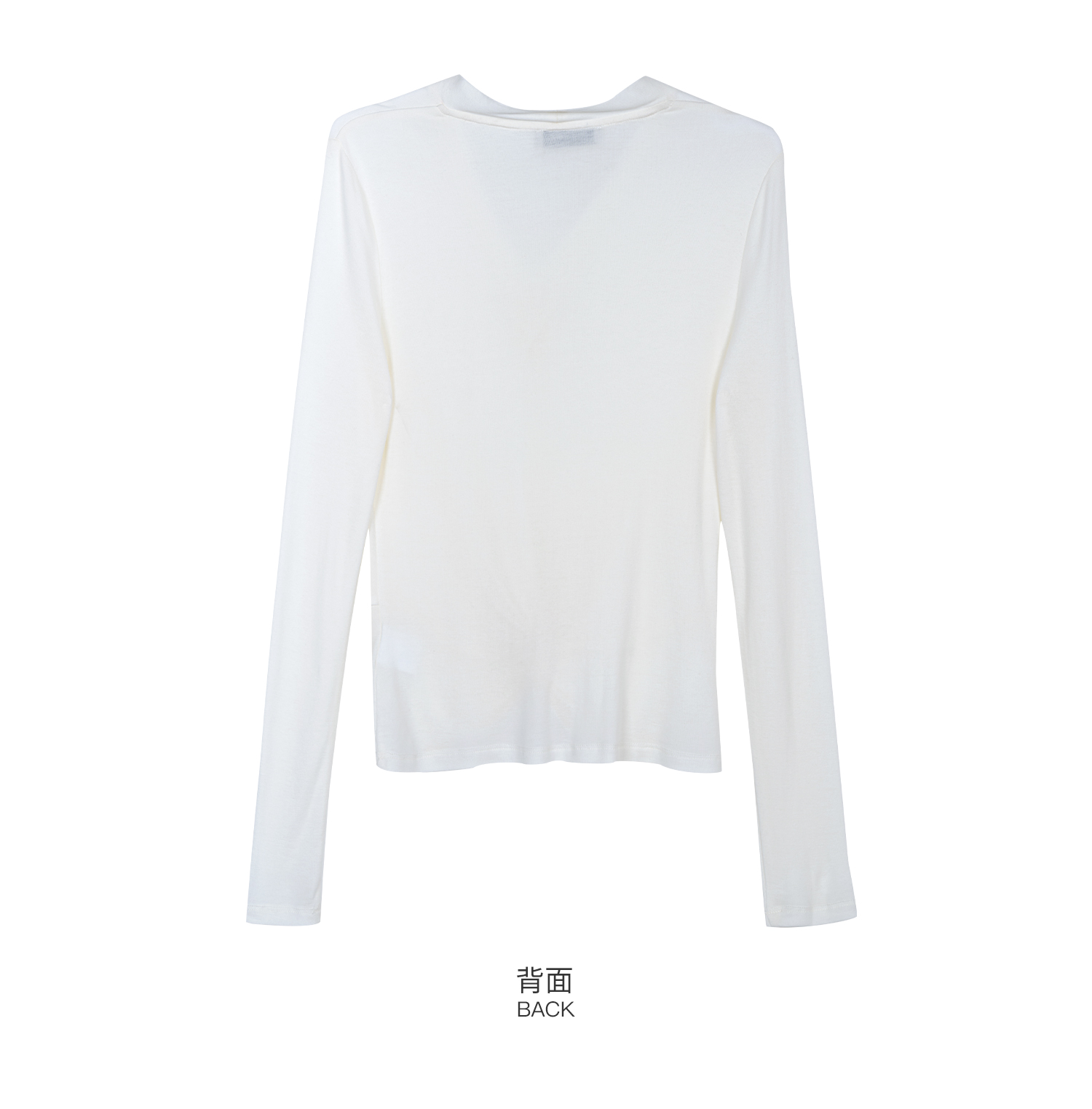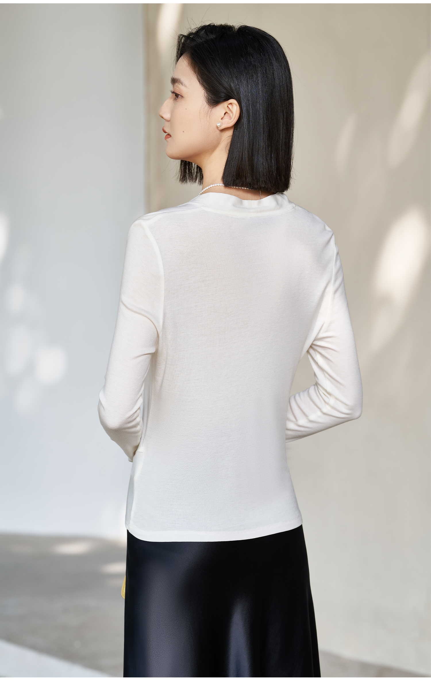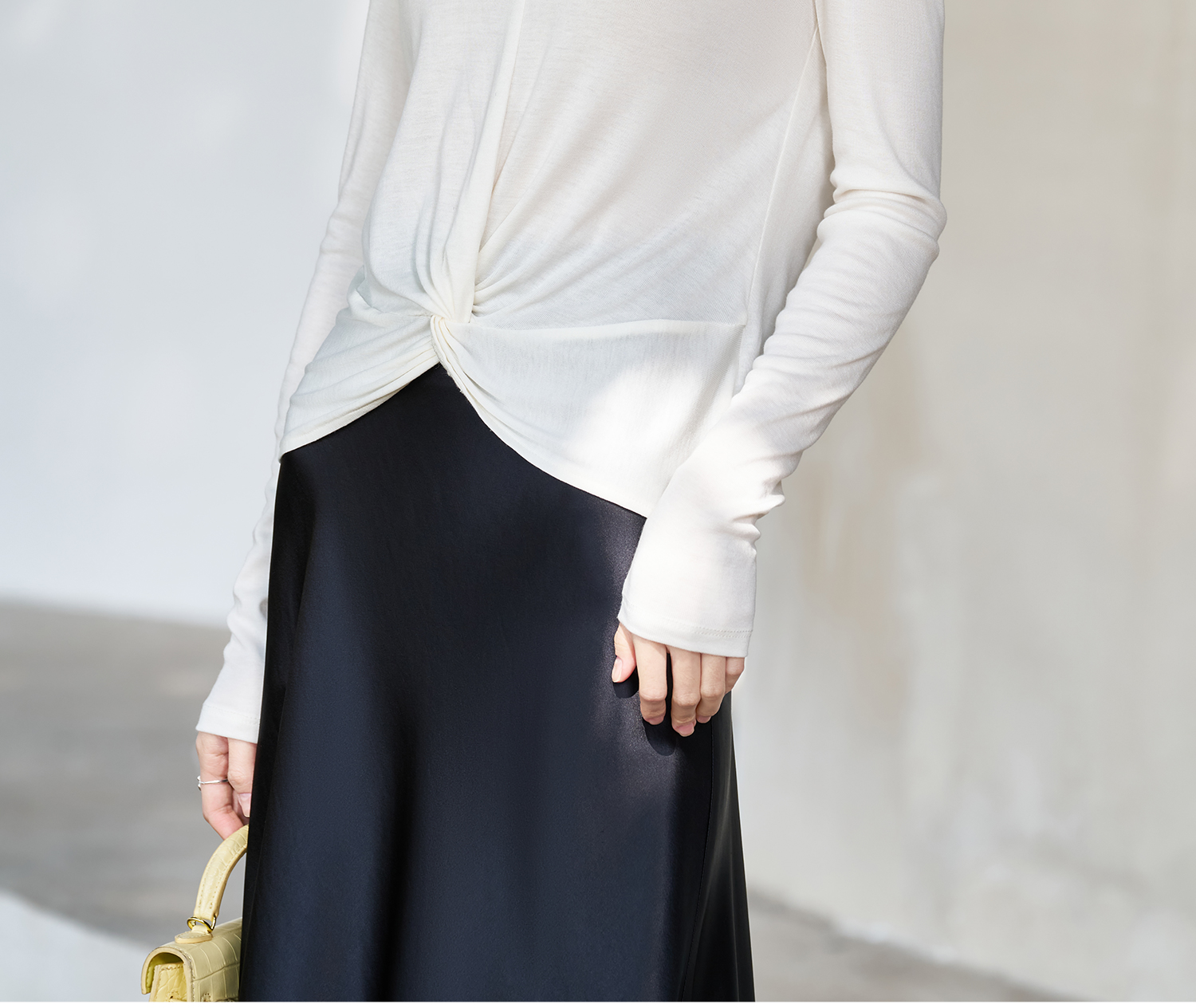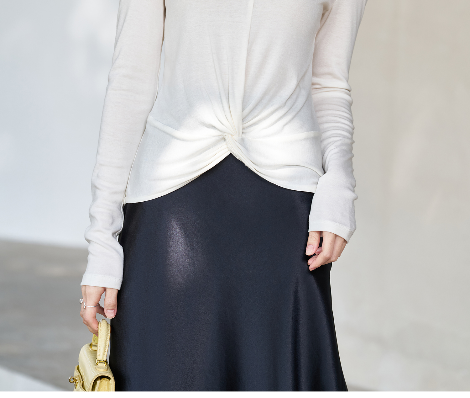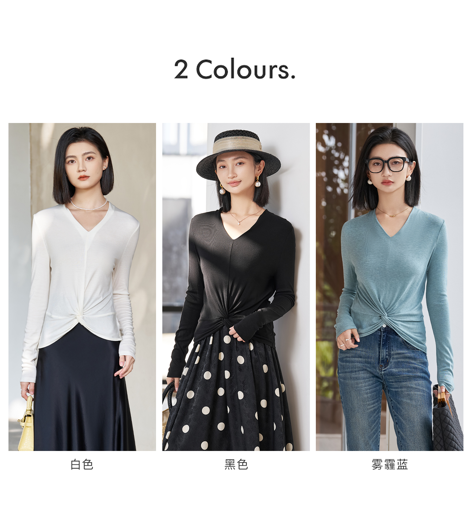 米思阳2026春季新款时尚百搭天丝蚕丝混纺T恤交叉设计下摆上衣女5516