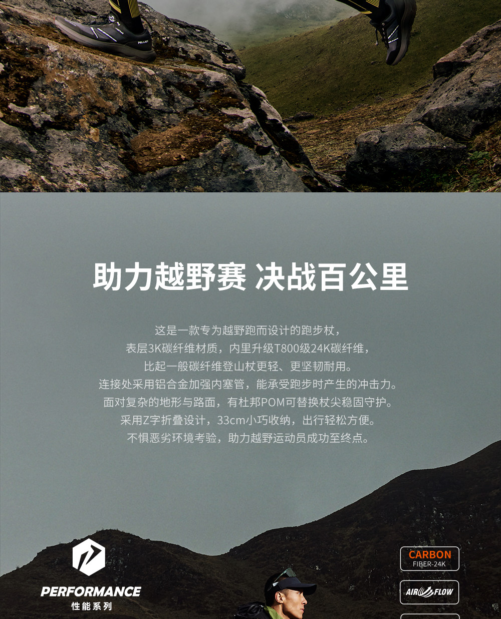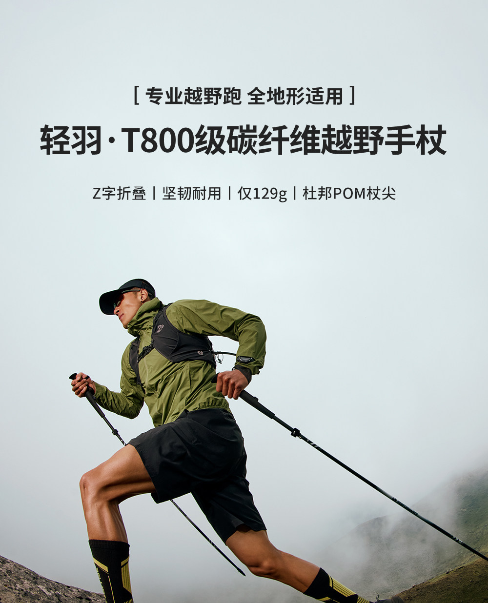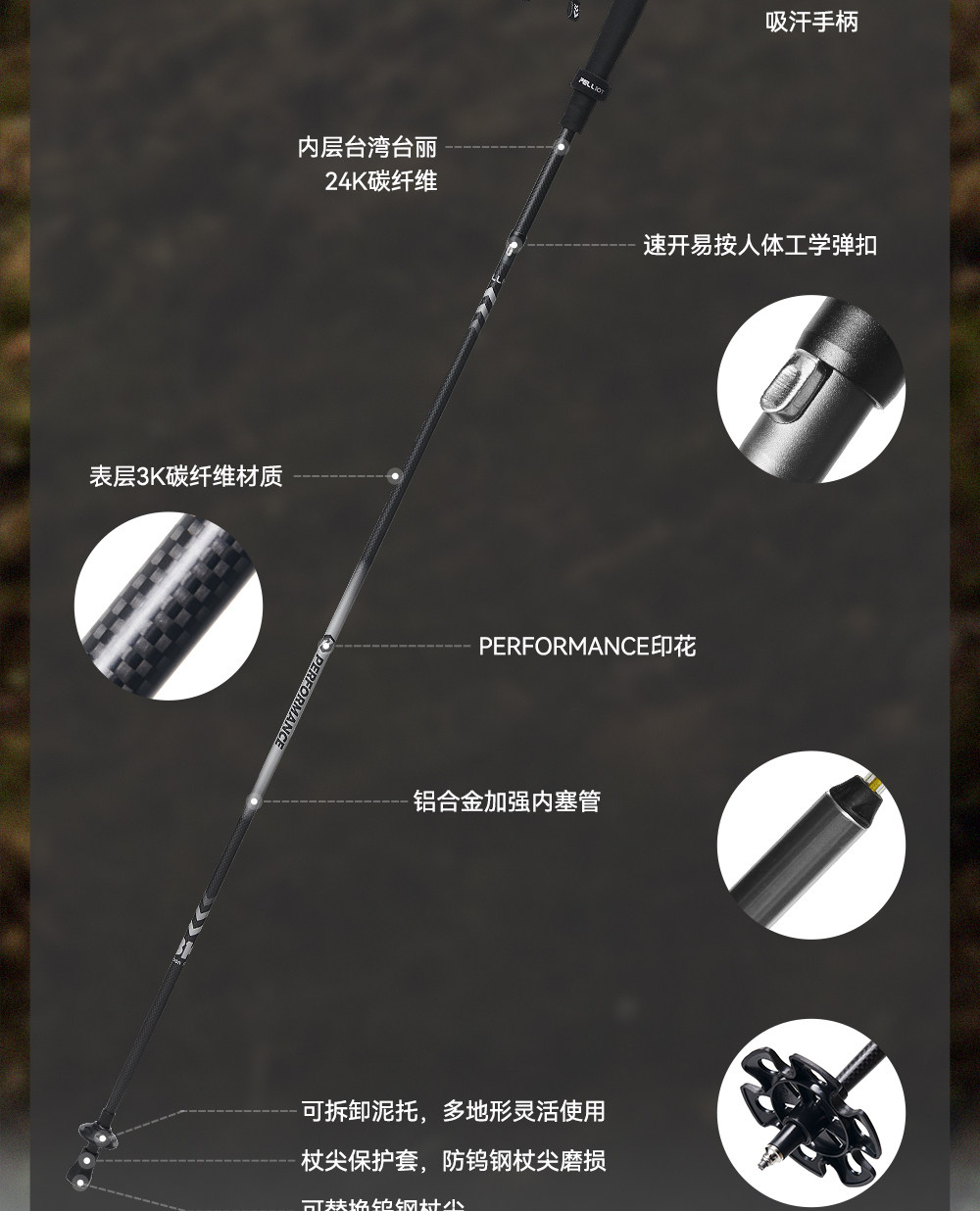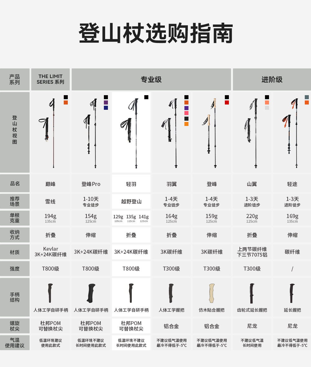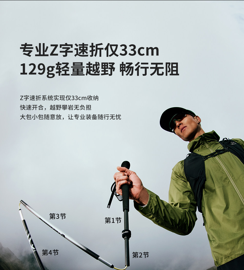 【轻羽】伯希和户外越野杖专业碳纤维登山手杖折叠超轻跑步装备