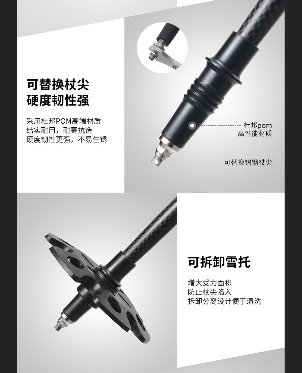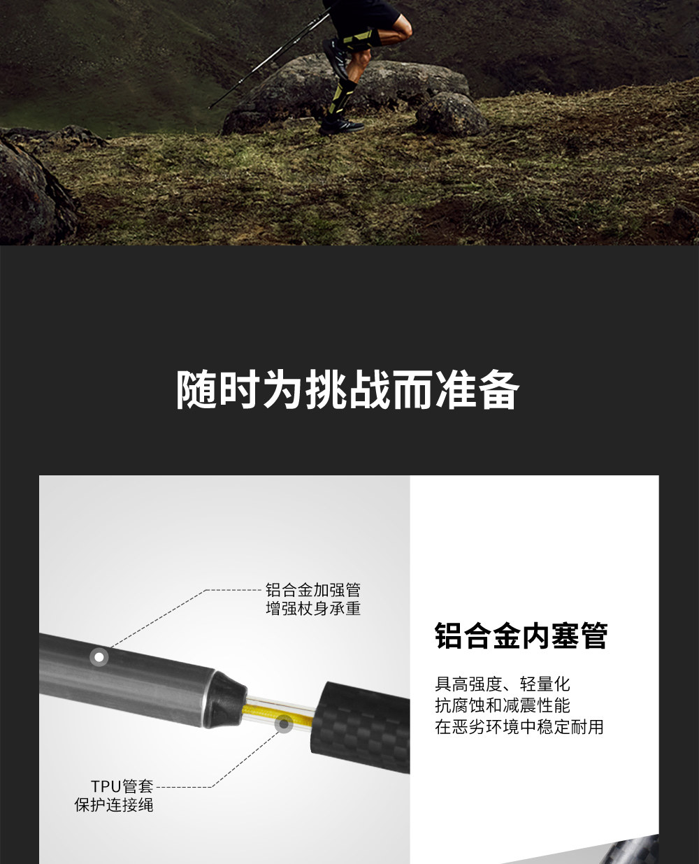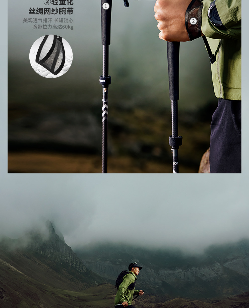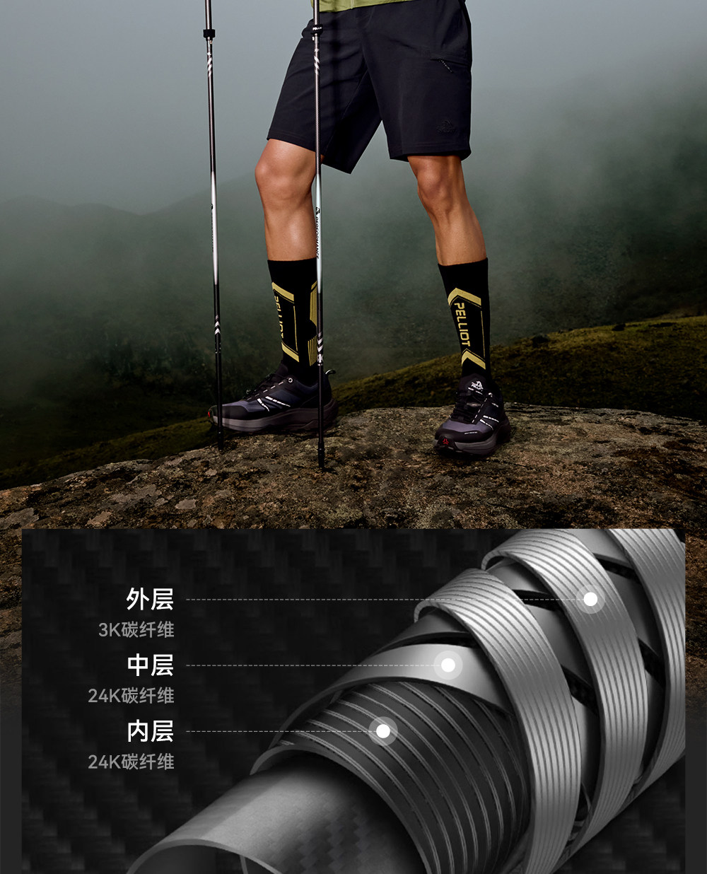 【轻羽】伯希和户外越野杖专业碳纤维登山手杖折叠超轻跑步装备