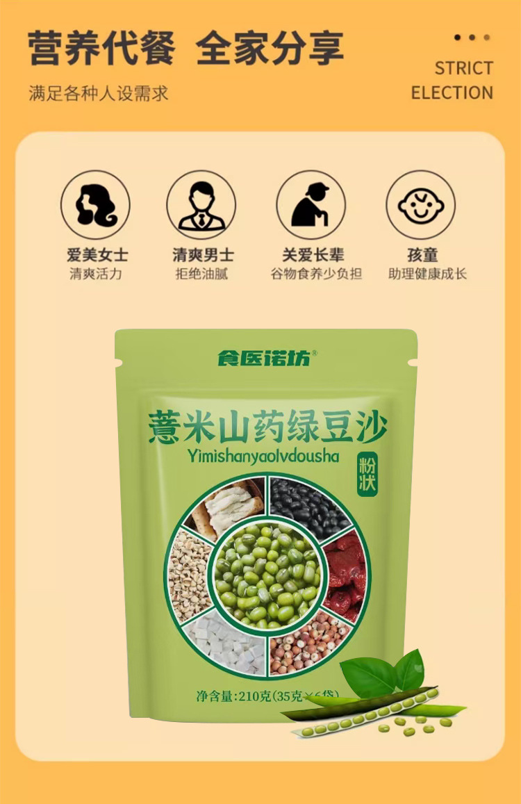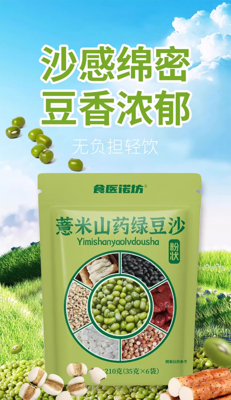 【夏日无负担轻饮! 薏米山药绿豆沙】精选优质绿豆出沙细腻,沙感绵密 豆香浓郁!粗粮细作 清甜可口,老少皆宜绿豆汤代餐冲泡独立包装 Y