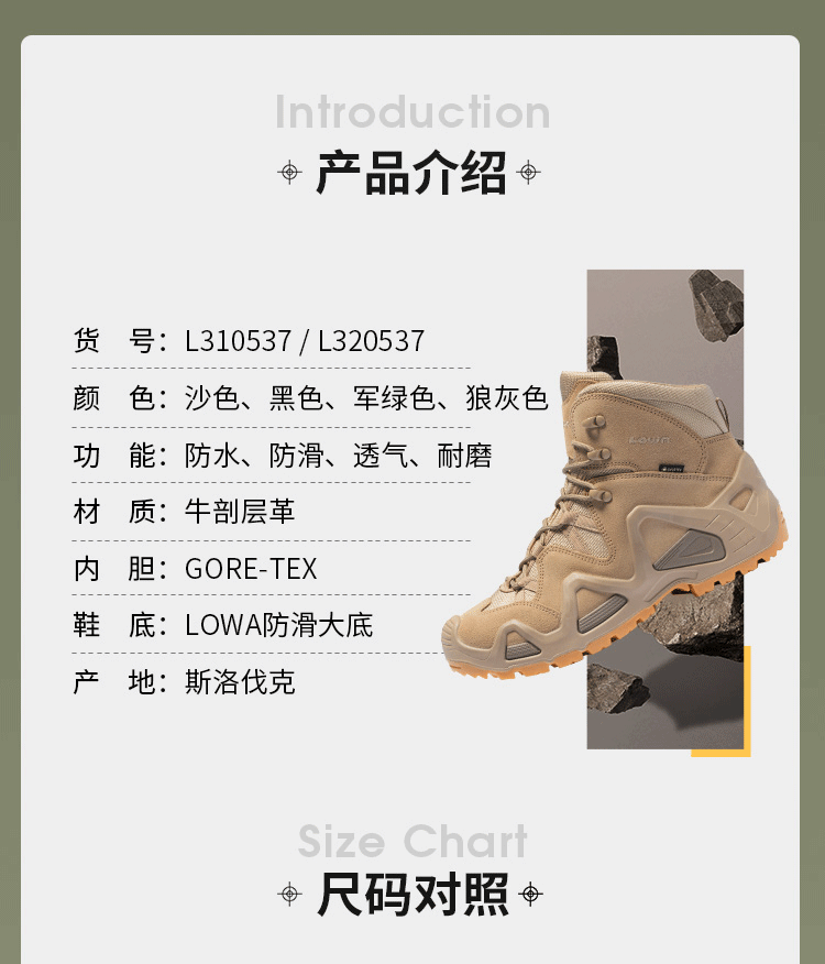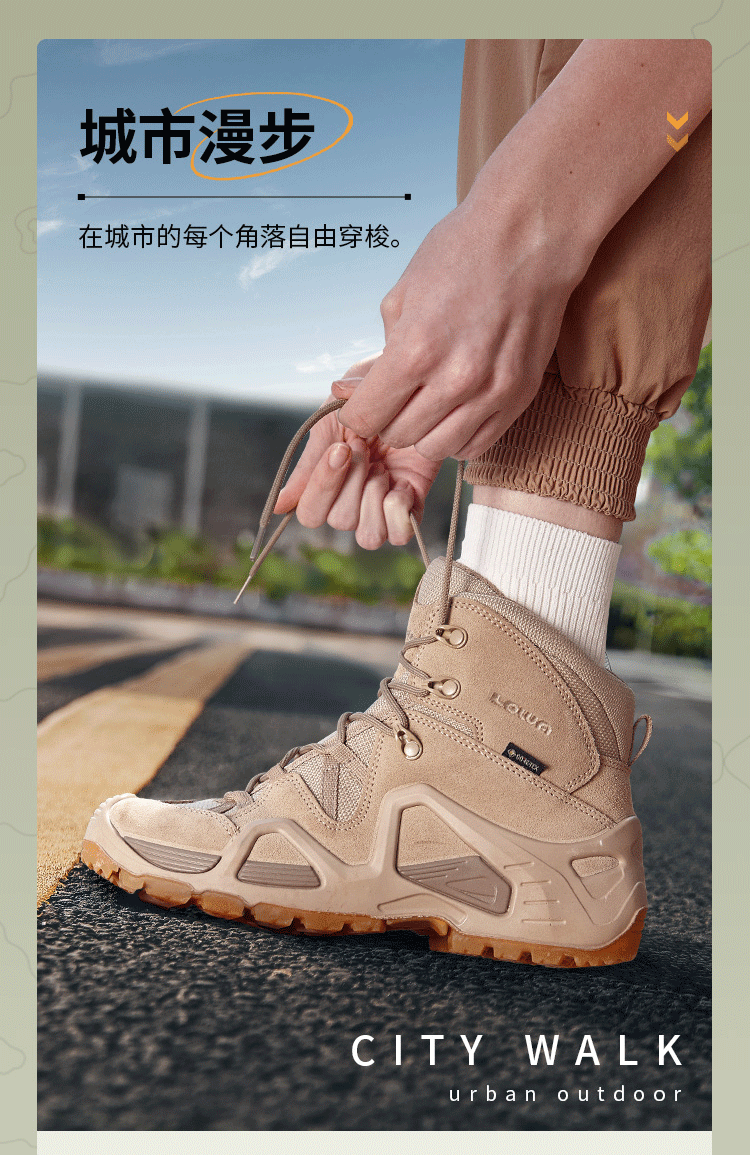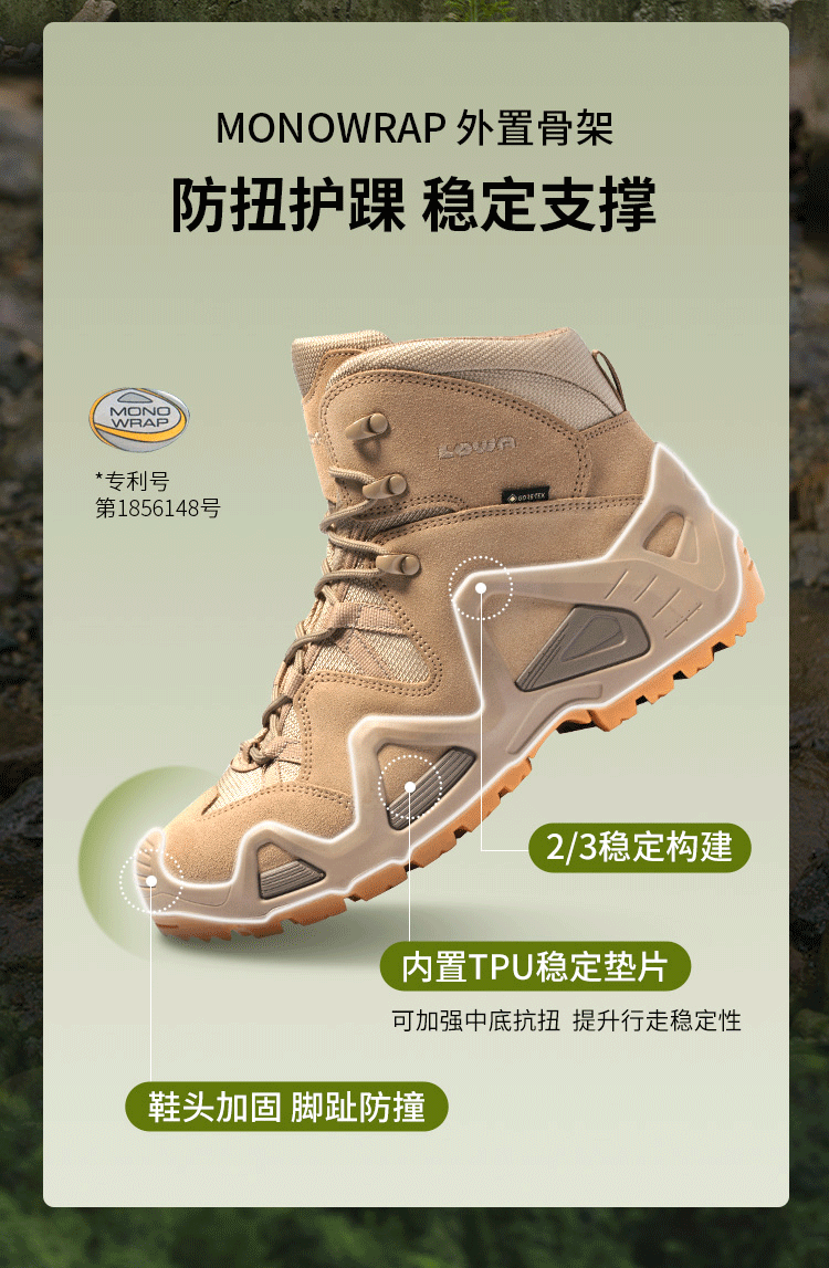 【双十一特价!】LOWA爆款户外男女沙色中帮鞋 ZEPHYR GTX TF防水战术军靴(TBZG)
