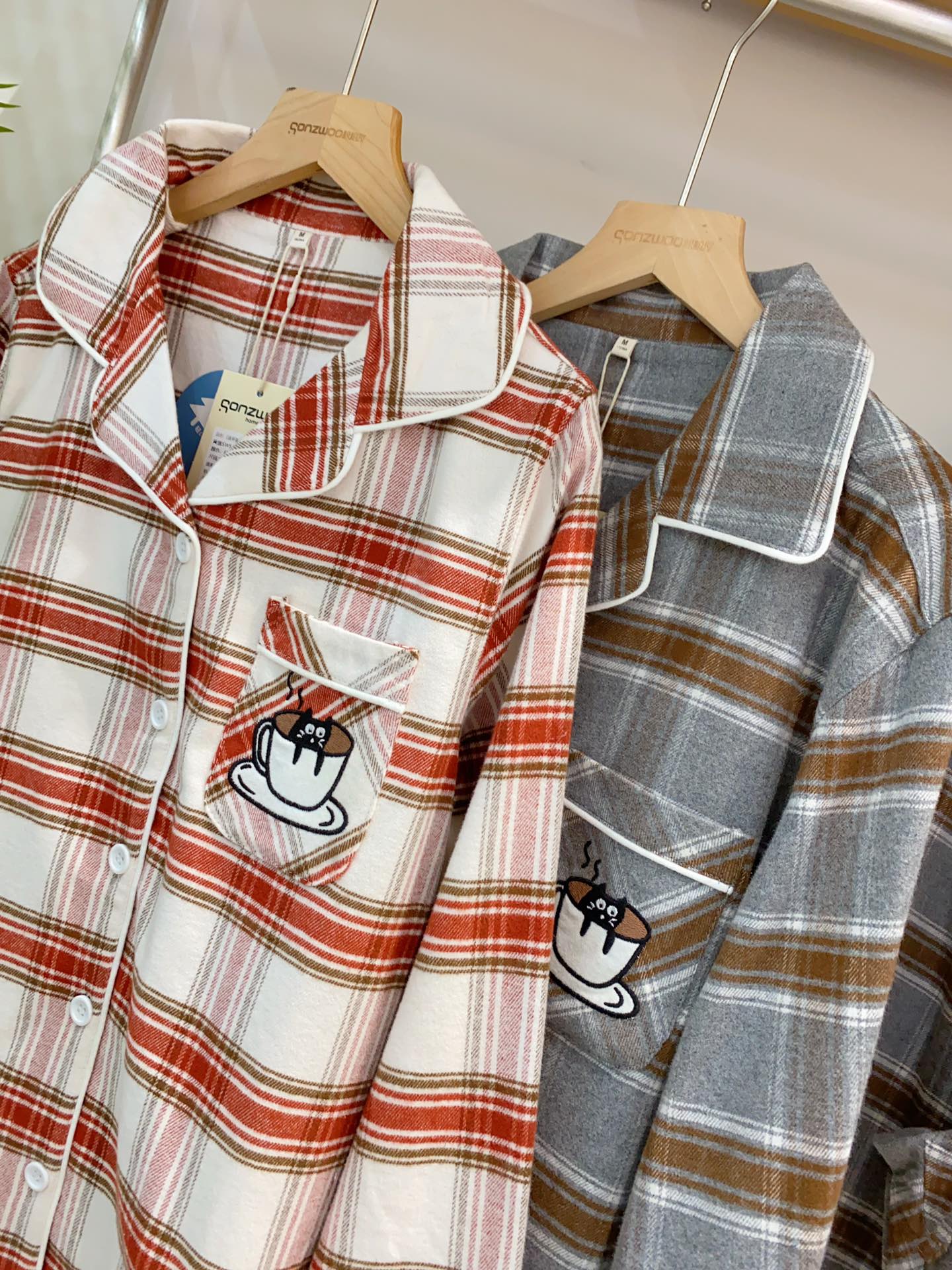 高级暖感面料、100%棉加厚磨毛,告别秋冬冰凉。经典复古条纹,小猫咪刺绣可爱俏皮,秋冬温暖不厚重。