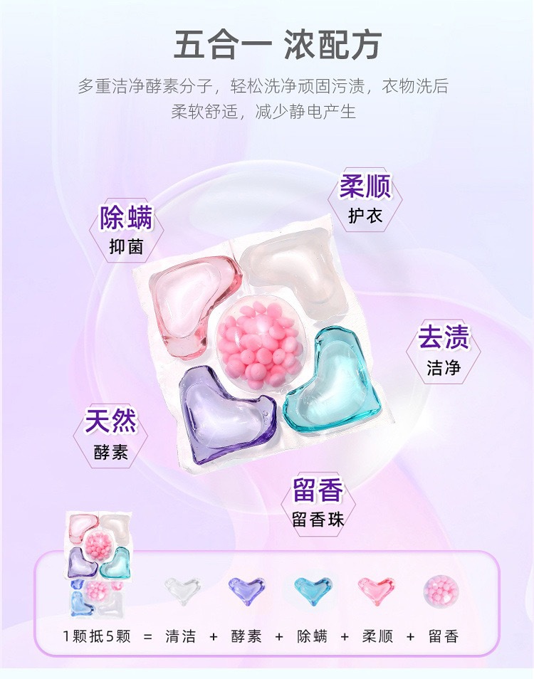 【除螨抑菌❗去渍清洁】五腔洗衣凝珠持久留香珠深层清洁去污柔顺洗衣珠浓缩洗衣液洗衣球。xa