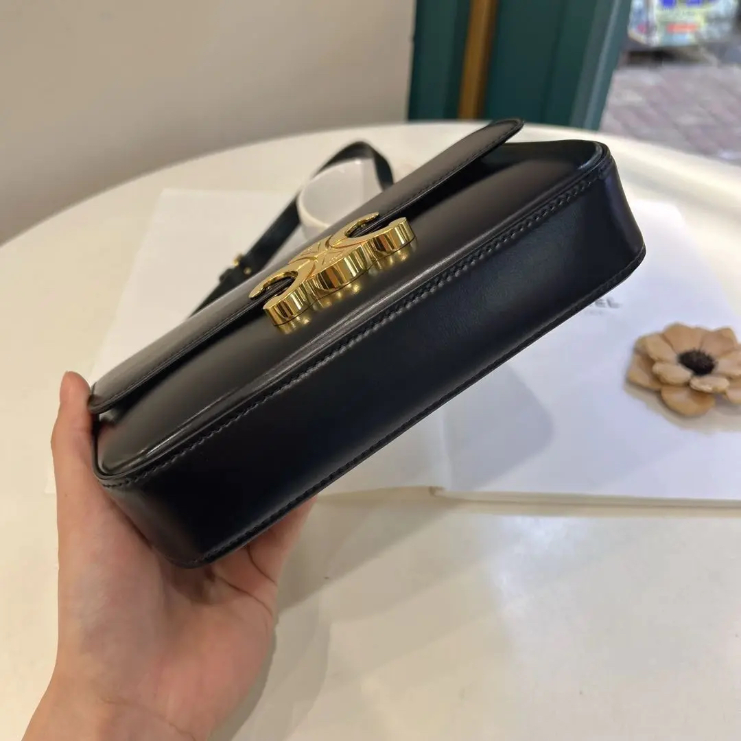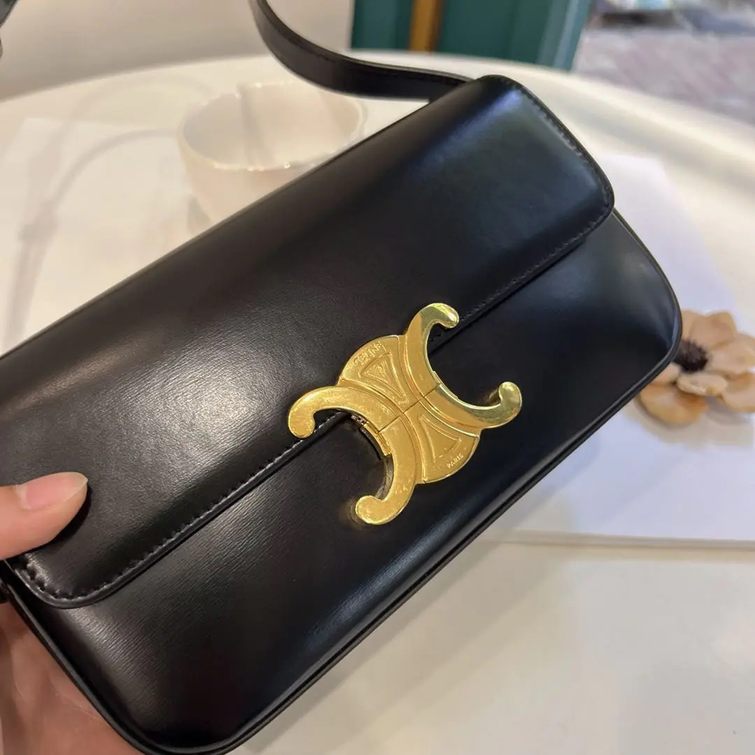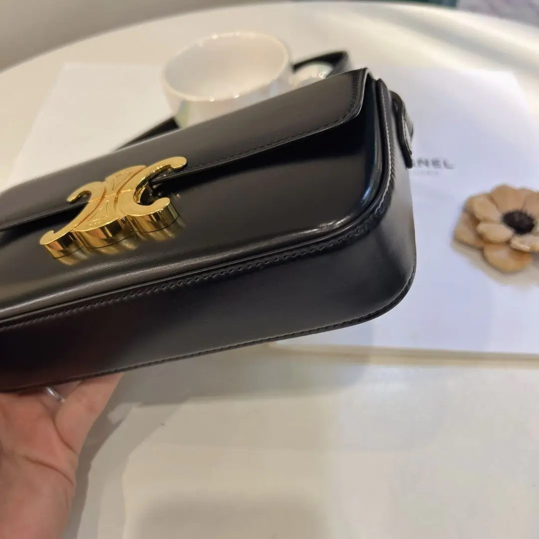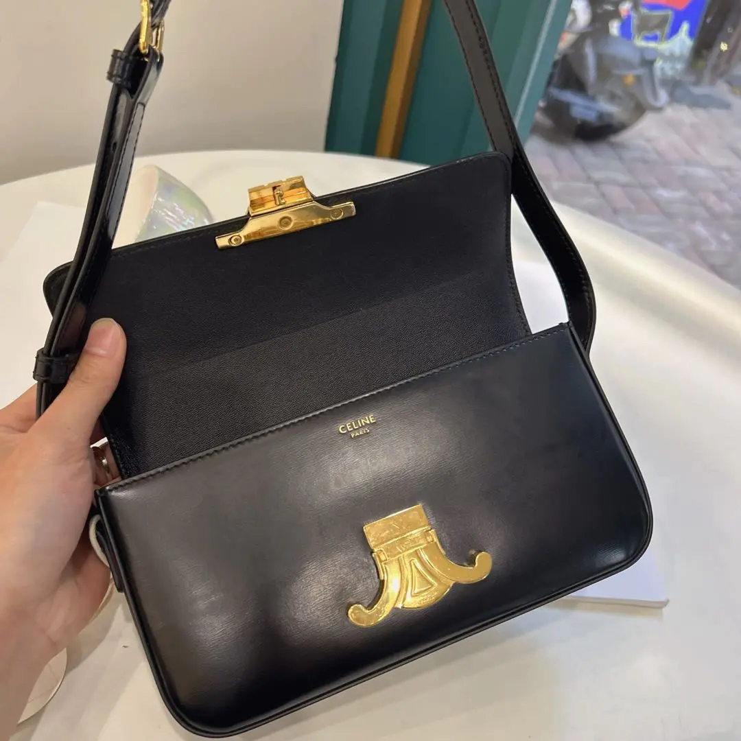 【商品详情】正品二手 Celine Triomphe 黑金 box牛 凯旋门 腋下包😍97新 20*10 配件:防尘袋。金属凯旋门超有辨识度