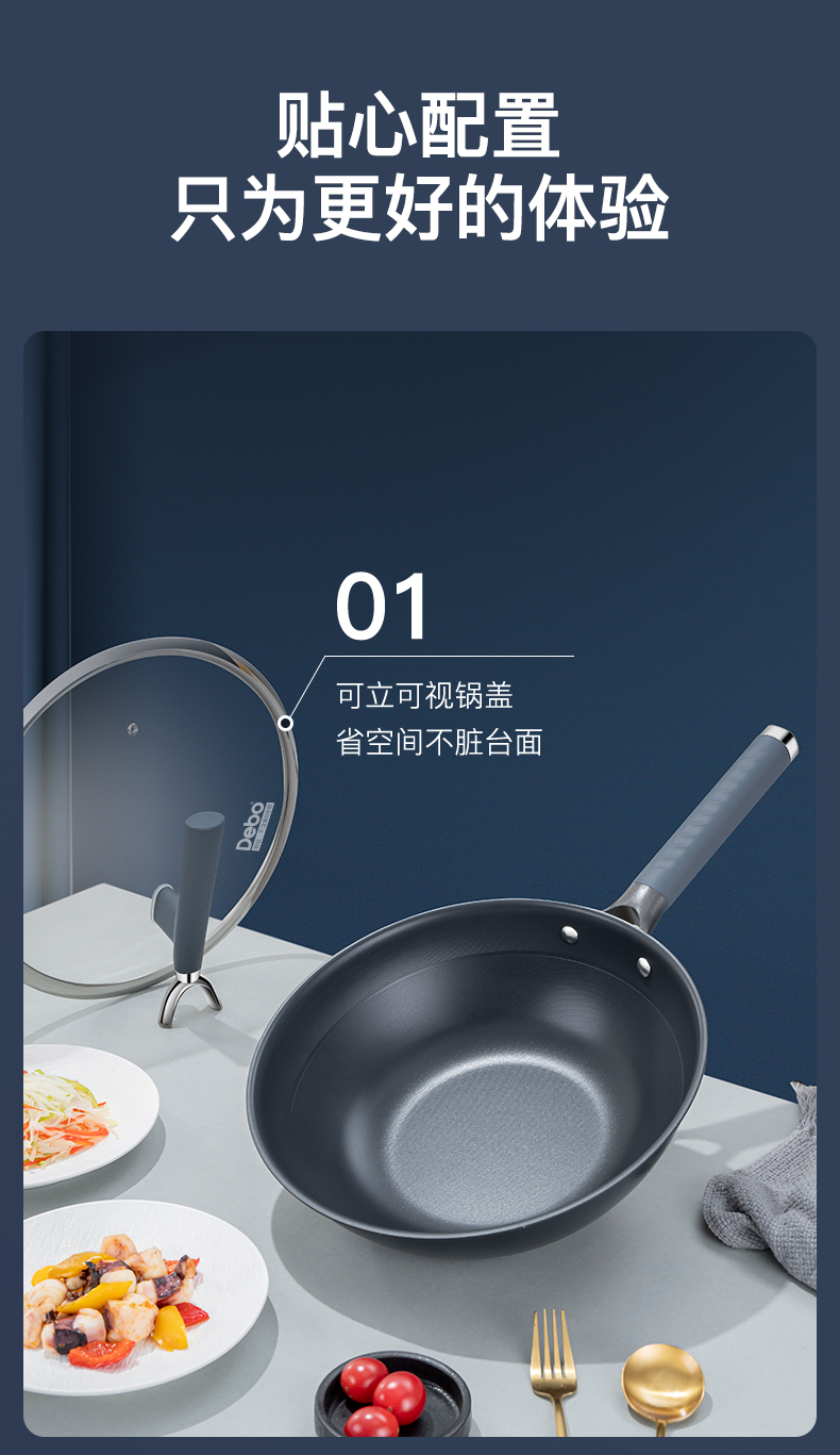 Debo德铂0氟钛盾不粘炒锅无涂层少油烟平底炒菜锅电磁炉燃气通用